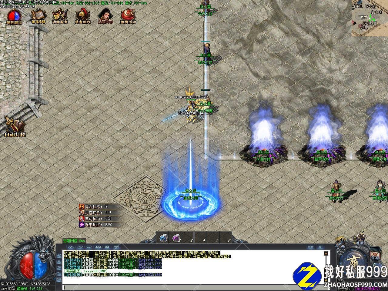 版本介绍:新区只是给玩家一个发展空间,合区才是激情的开始,请不要放弃新区发展的空间,合区后你可能抢不到怪!,本服人气比看到的要多,因为都在地图里。
