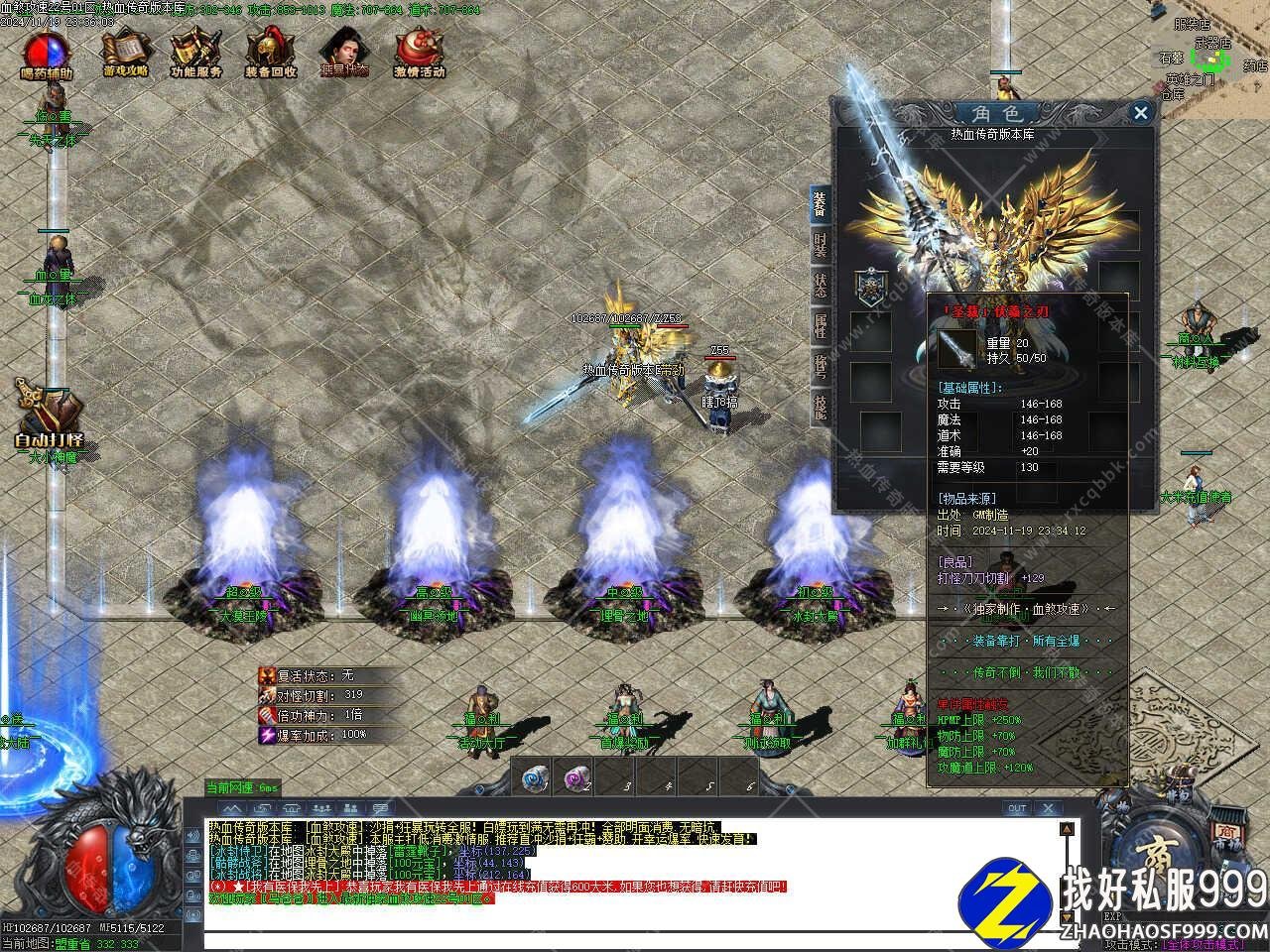 版本介绍:本服所有装备打怪都可爆出,也可用材料合成,四格装备各自附带不同属性,等级越高属性越高,具体自行体验。