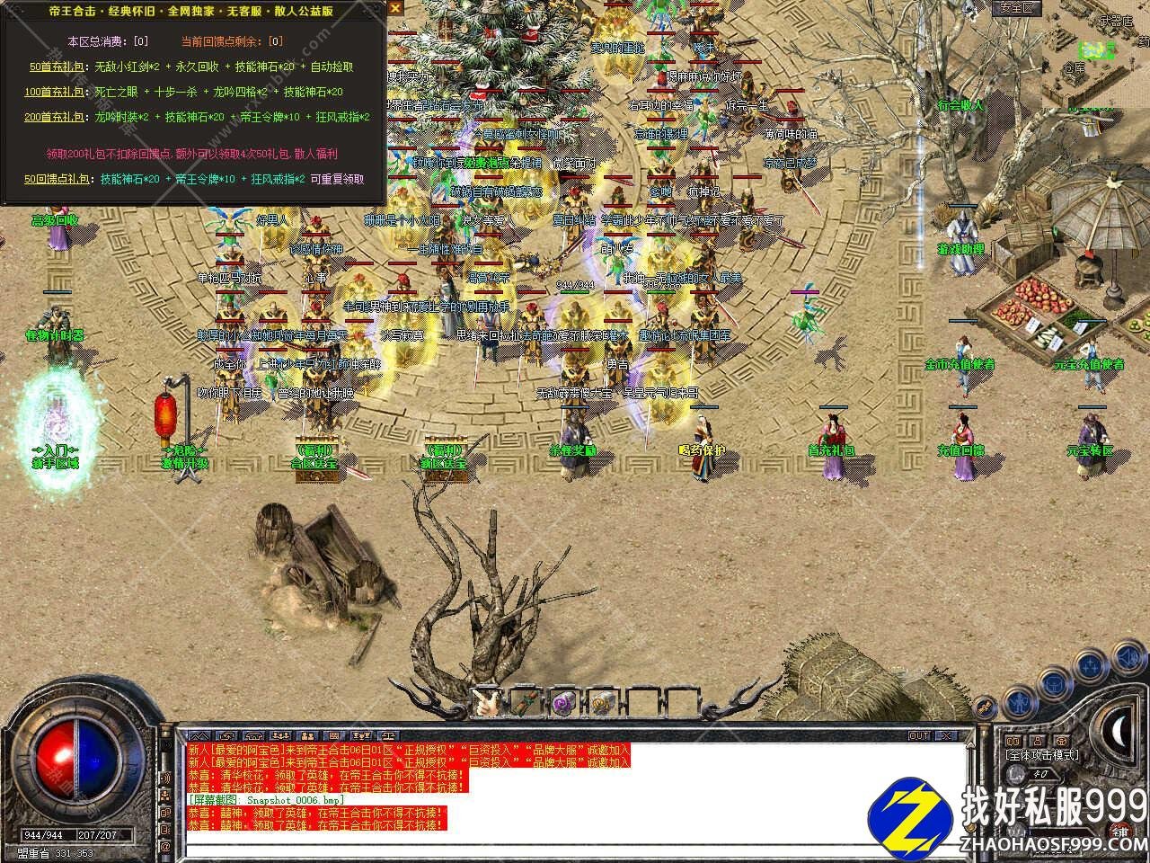 版本介绍:新区开放第三天12:00合区,晚上20点统一攻沙,沙巴克奖励查看游戏NPC了解,欢迎大家入驻体验。