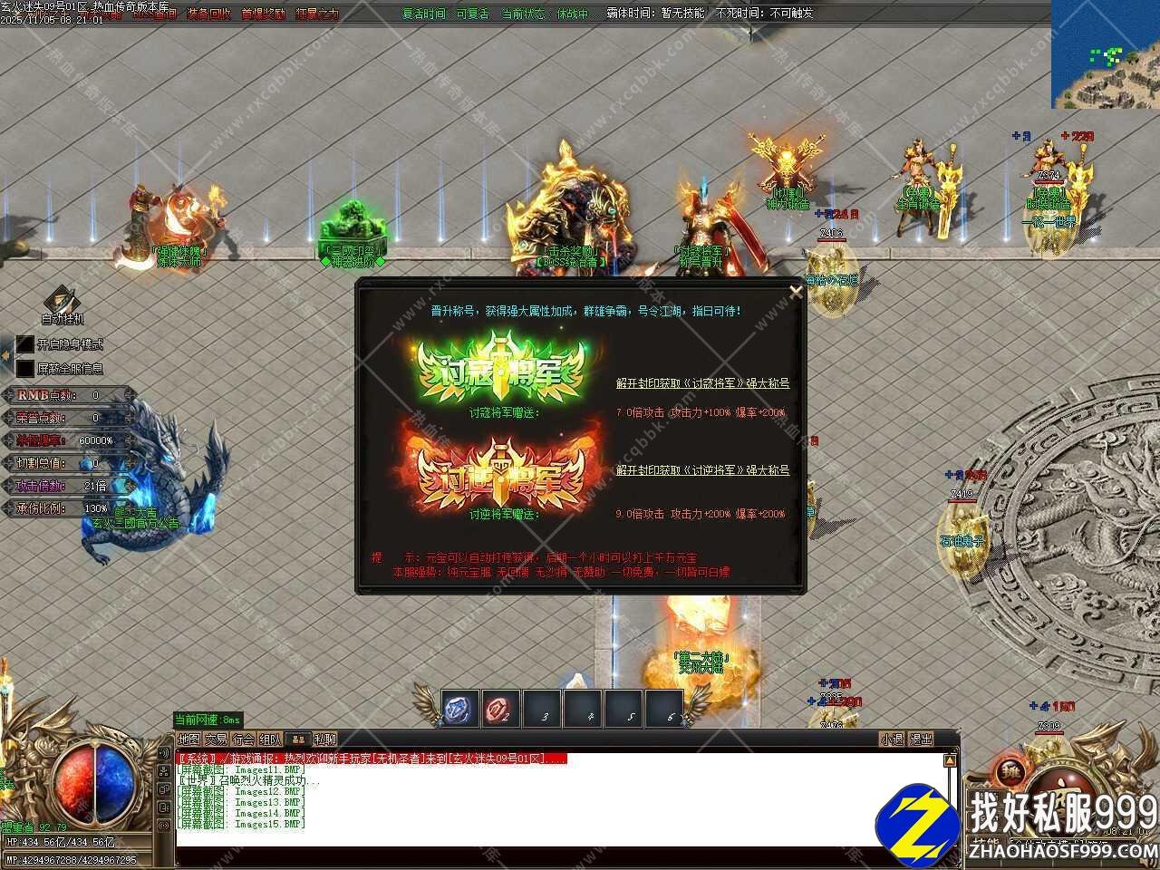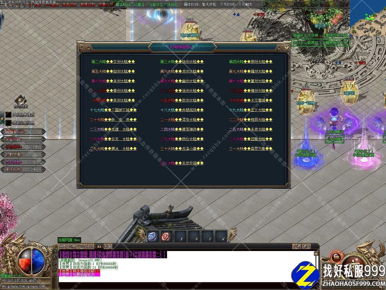 四.新增等级专属地图,爆率加倍,此地图掉落本服所有终级装备,爆率极高,这个地图每6小时刷新一只天子级BOSS,刷在地图正中,需要人物等级到达3888级+58帝王石才可以进入。