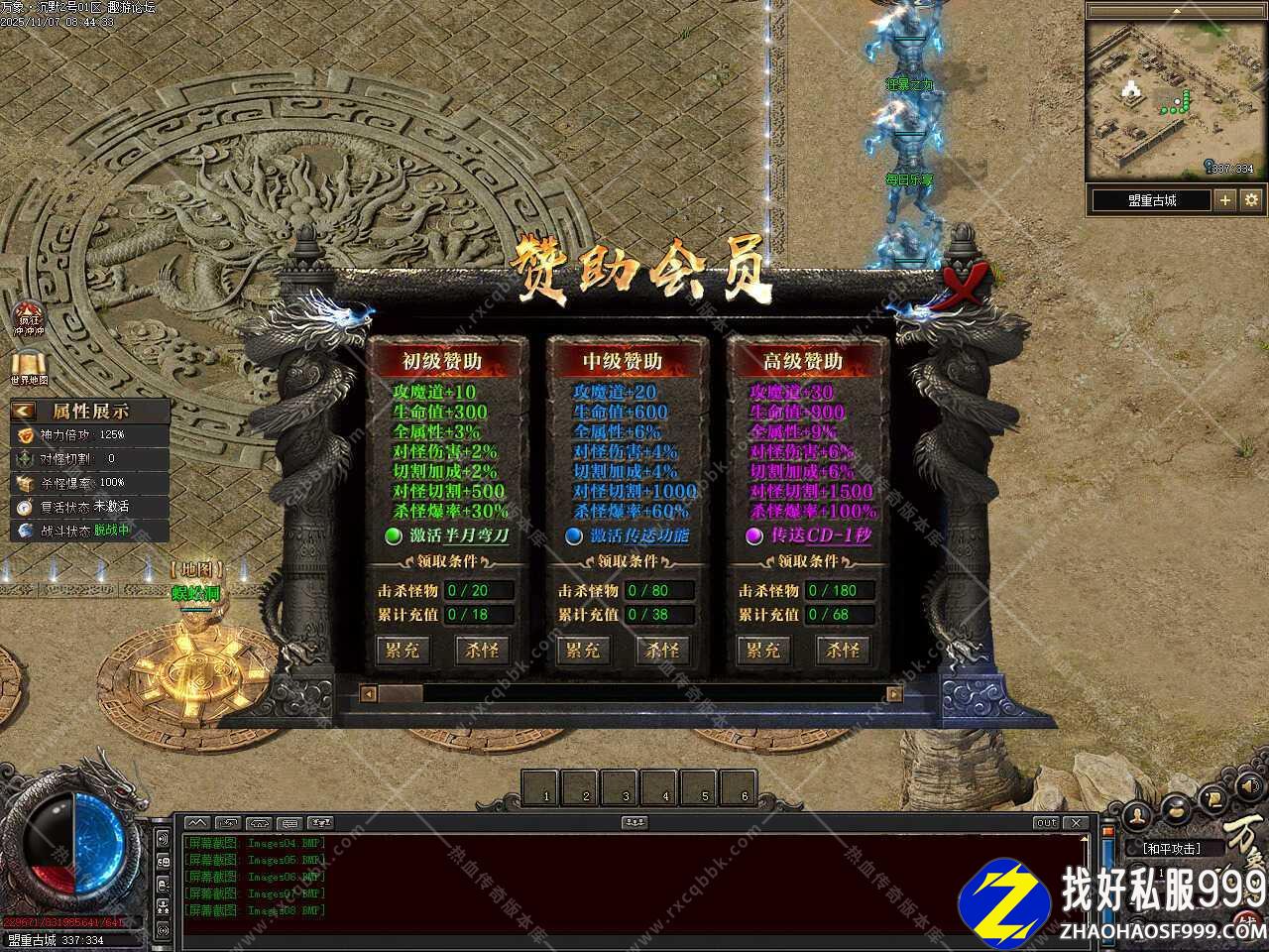 二.新增赞助技能,自动拾取技能有两种自动拾取方式、自主切换,备注:因个别版本爆率过高,或者其他因素导致爆出物品后非常卡,此技能可切换两种自动拾取方式,供大家自行切换选择;赠送自动吸怪技能(每5秒自动执行吸怪技能并获得3秒无敌状态);记录坐标技能,可记录5个坐标点,全服任意飞行,个别特殊地图会有限制使用;综合技能便捷,有上述所有功能,一键搞定方便快捷,增加智能挂机系统,注:以上所有功能均为技能效果,领取后使用技能即可生效。
