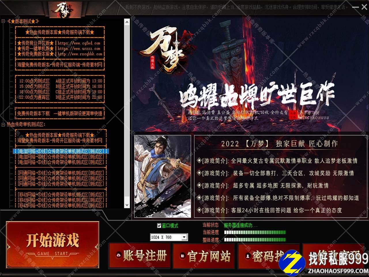 版本介绍:此zhaosf发布网服务端版本补丁大小10.20GB,PAK补丁全部一次加密,测试客户端为17周年纯净客户端,游戏兑换码:888,此传奇版本带有假人系统功能,自动上线。