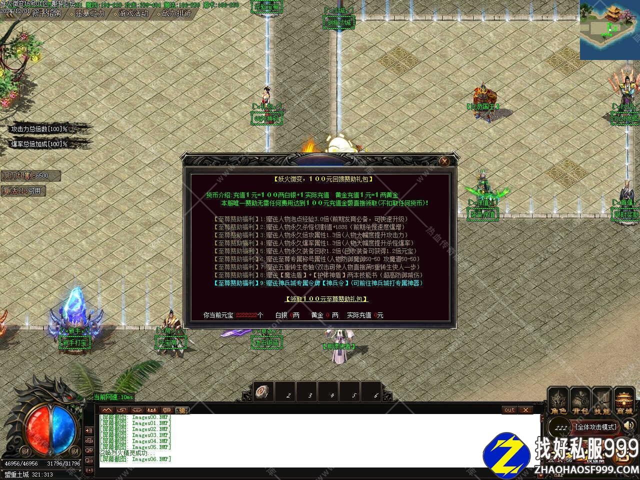 版本介绍:新手上线后在土城地图按顺序打怪,新手打宝→亡灵炼狱→火魔洞窟→冰川雪原等,所有元宝靠回收装备获得。