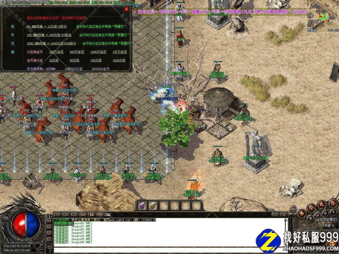 三.万年血玉特品可以回HP和MP,可以不用买药品,如果觉得升级慢的可以合一下经验护符,下三格法宝、法道护身等,全部可以用金币合成。