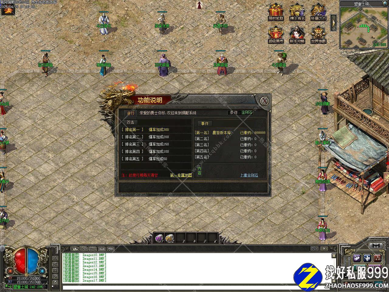 版本介绍:新增活动使者NPC,每天晚上20点在沙巴克皇宫刷新BOSS,爆大量装备材料;每天10点,14点,19点,24点开启BOSS活动地图,地图内刷所有BOSS,爆率不错哦。