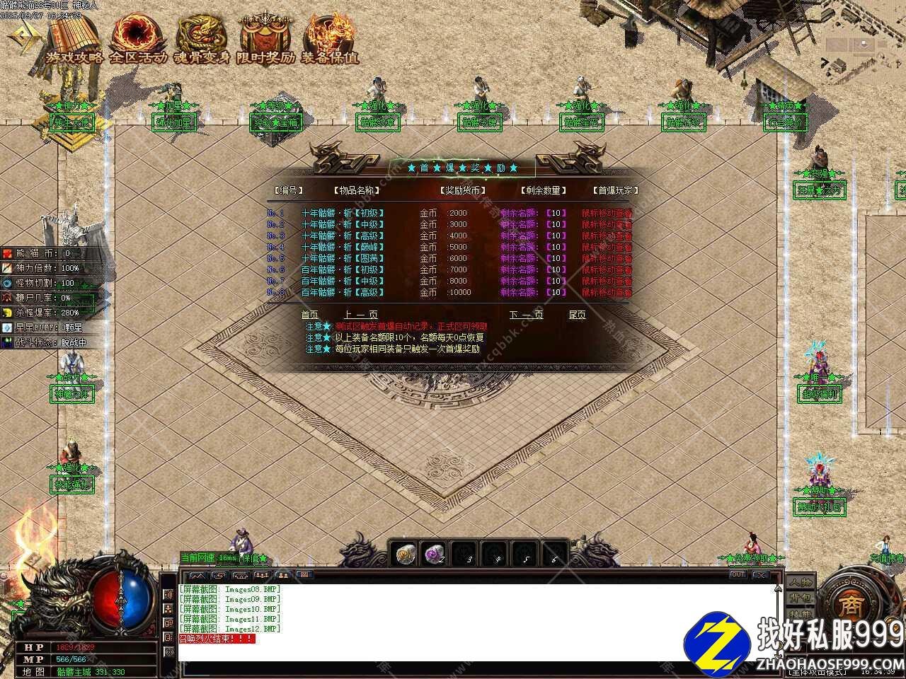 八、添加冰封遗迹等级地图,地图刷新怪物洪荒30分钟,史诗30分钟,世界30分钟,传说远古60分钟,装备随便爆,需要人物等级115级,金币5万才可以进入此地图。