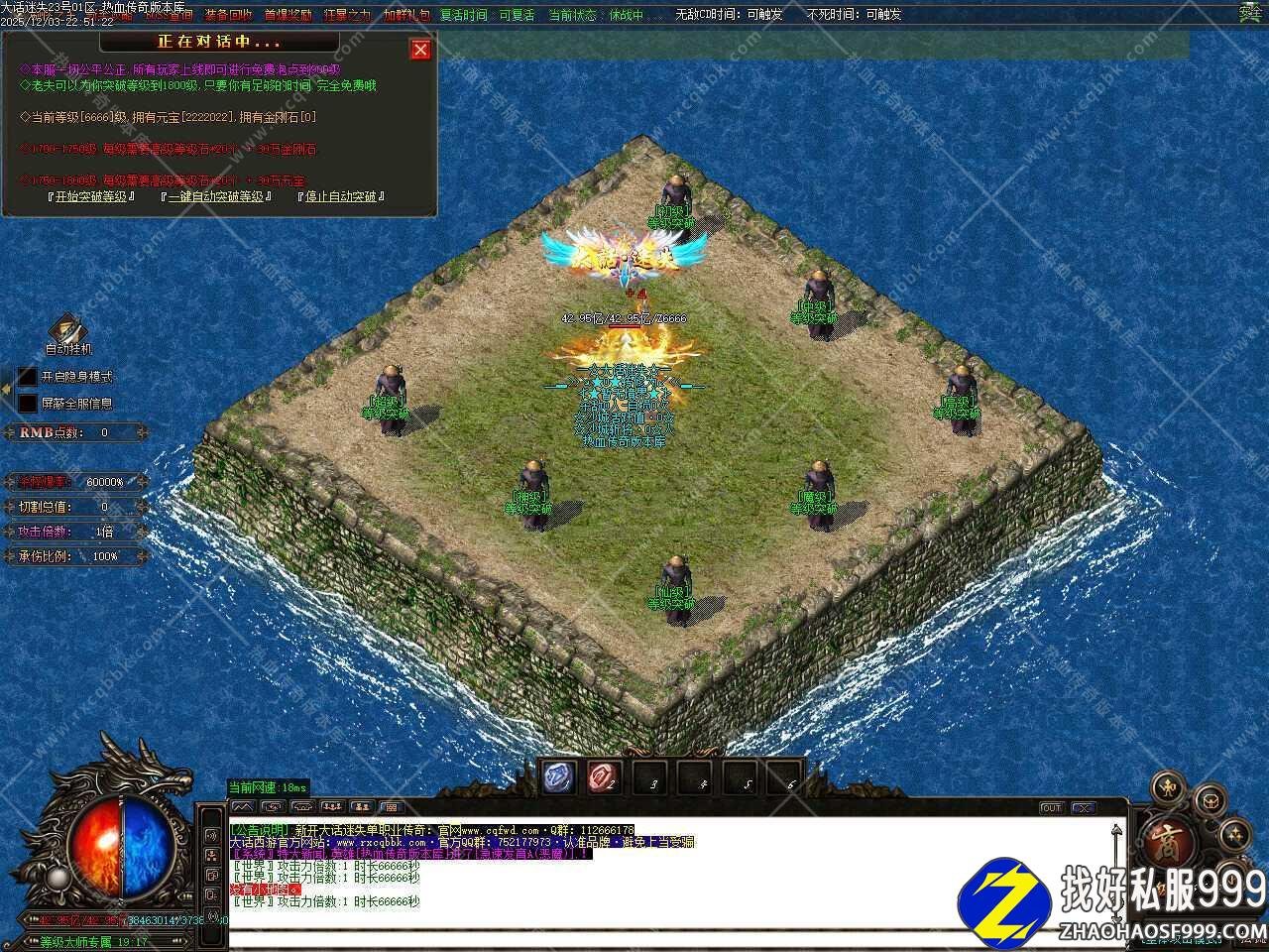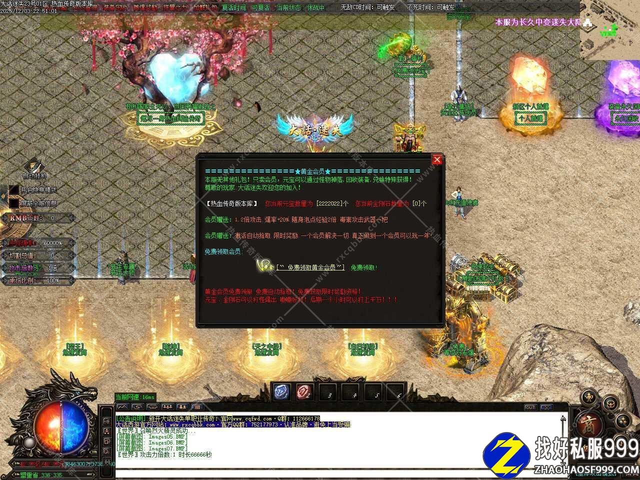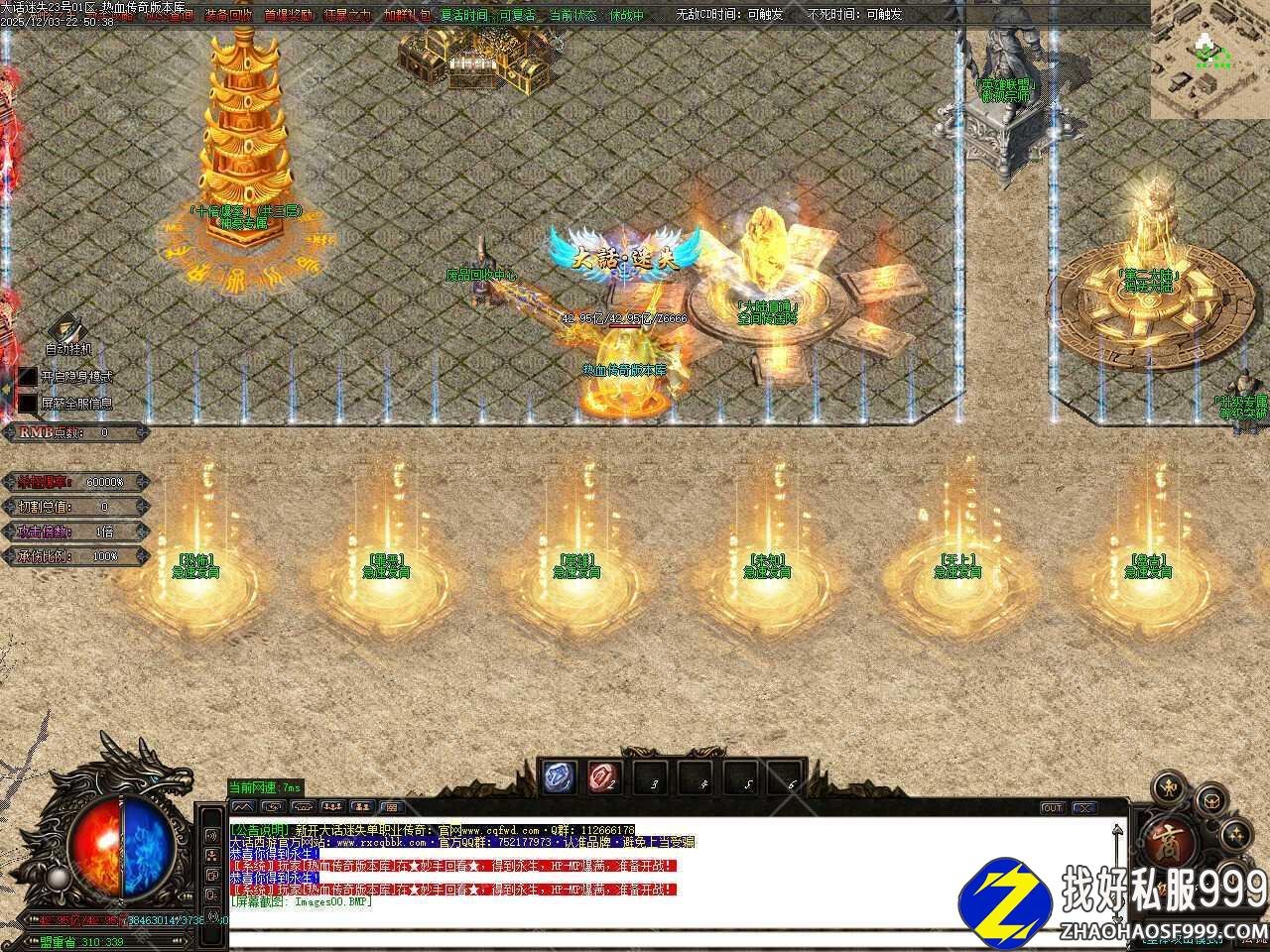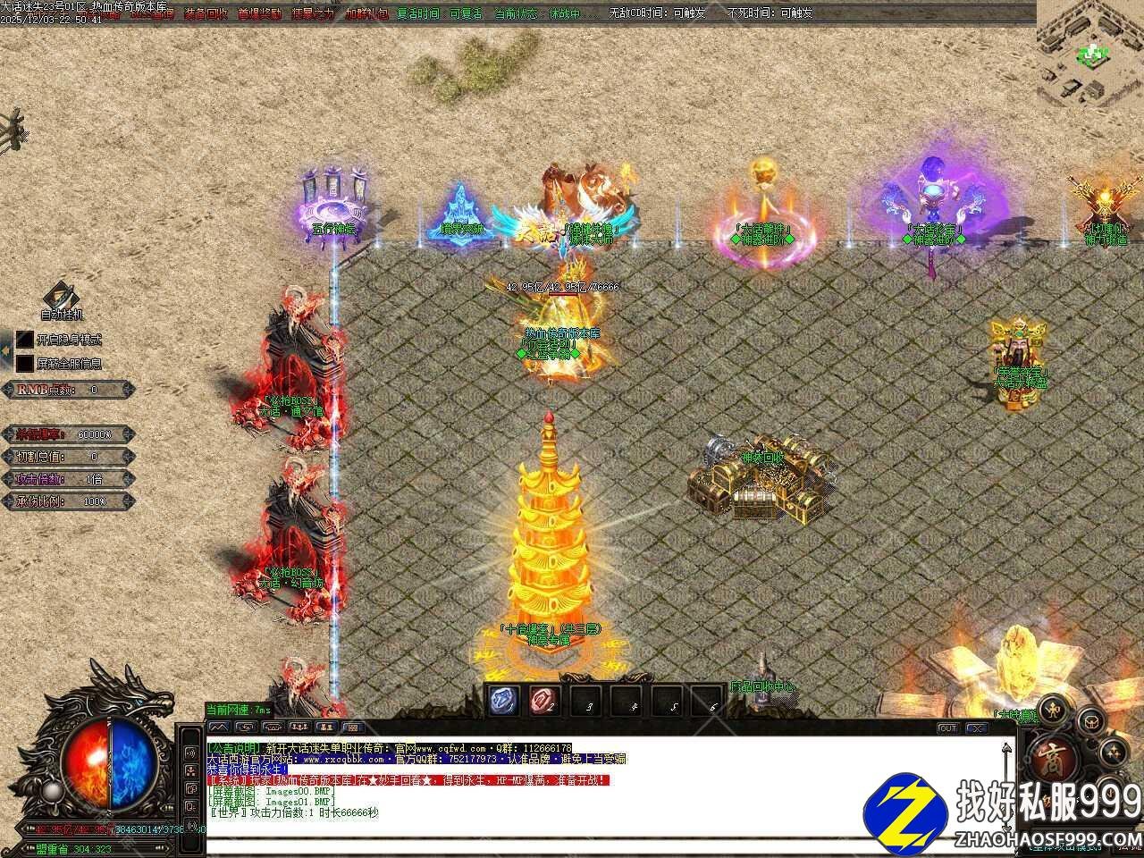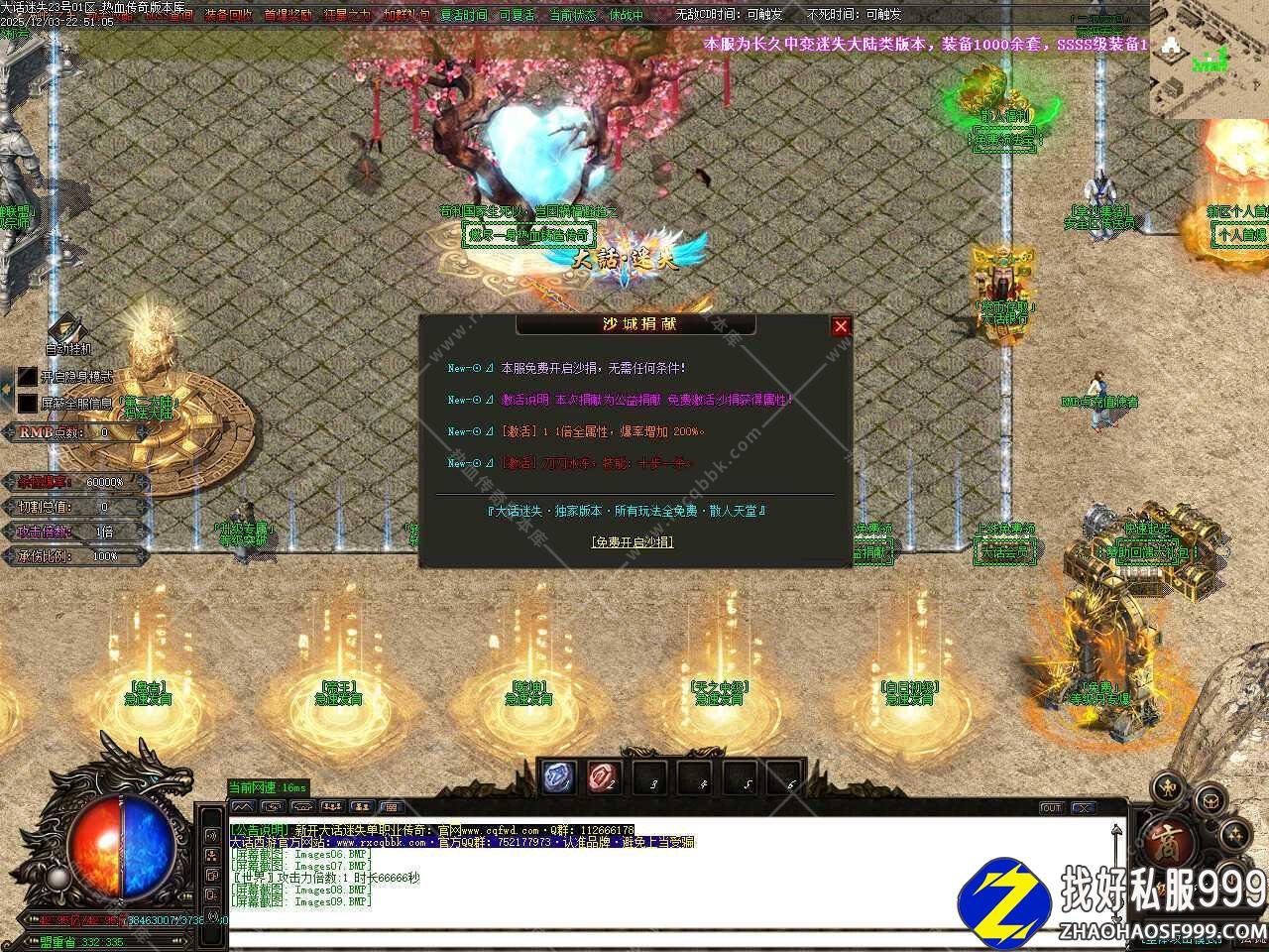 五.本服属于纯元宝服,无回馈,无沙捐,无赞助,一切免费,元宝可以自动打怪获得,后期一个小时可以打上千万元宝。