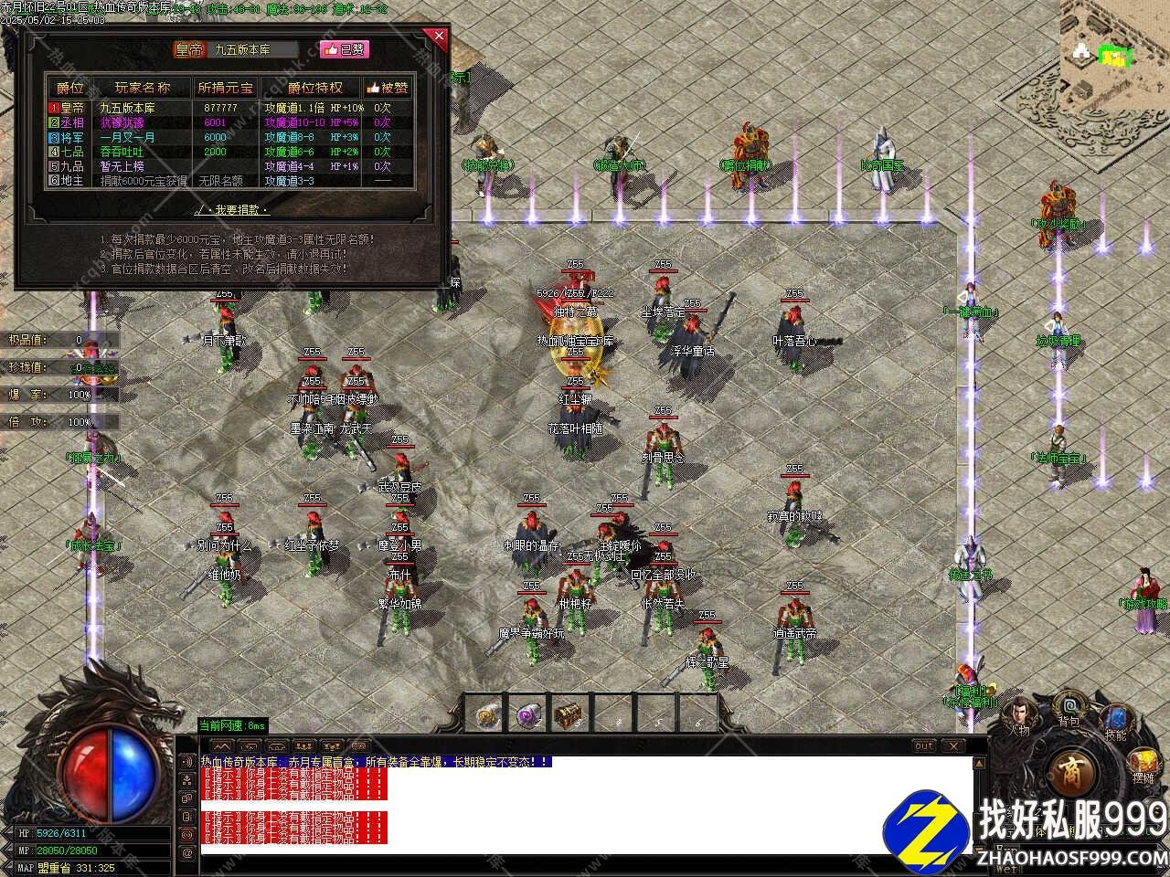 版本介绍:此传奇版本共刷新[洪荒,昊天,圣皇,伏羲]四大野外BOSS,刷新时间请关注土城(335,344)处的NPC,野外BOSS的爆率是地图BOSS的,游戏材料,高阶装备,书页元宝,是玩家必抢BOSS。