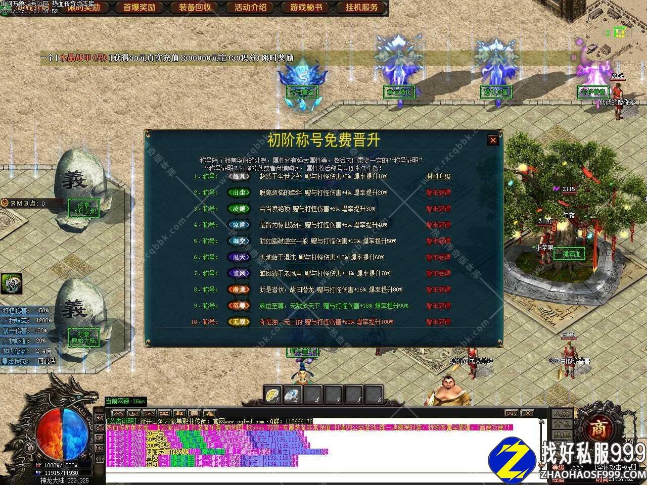 三.新增神魔进阶玩法,神魔最高10级,进阶100%成功,所有属性全部10级可领取神魔圆满称号,翎取后可获得爆率提升+50%和打怪伤害+10%的附加属性值。