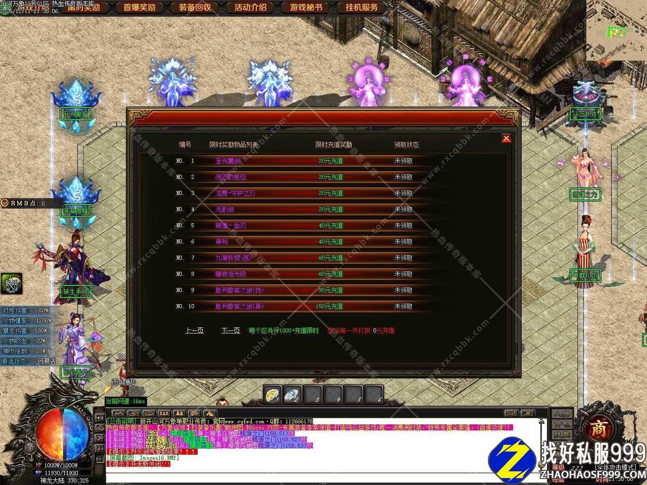 二.新增测试奖励功能,在测试区打到限时奖励获得的游戏点可以记录,记录不限制次数!记录1元限时开区后便可以获得10000元宝+1积分奖励,在测试区一定要在NPC那记录测试区限时,如无记录则开区无法领取。