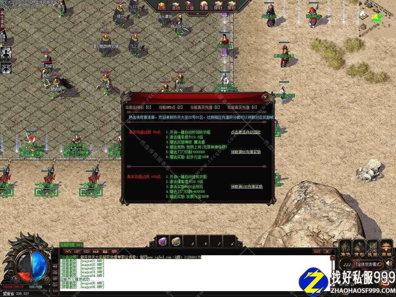 二.添加冲级奖励功能,达到相应等级就可以领取冲级礼包哦,100级领取诛仙之剑(1.6倍)、120级领取1.5倍攻击手镯、150级领取神器光辉之戒,前面都无限制,150级的有名额限制。