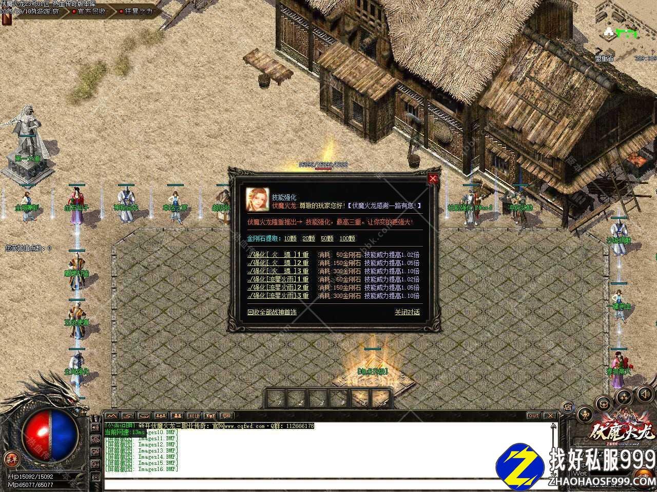 四.伏魔火龙隆重推出技能强化功能,最高三重,让你变的更强大,提升需要消耗一定的金刚石,每件战神可回收2点金刚石,强化后技能威力提高相应的倍数。