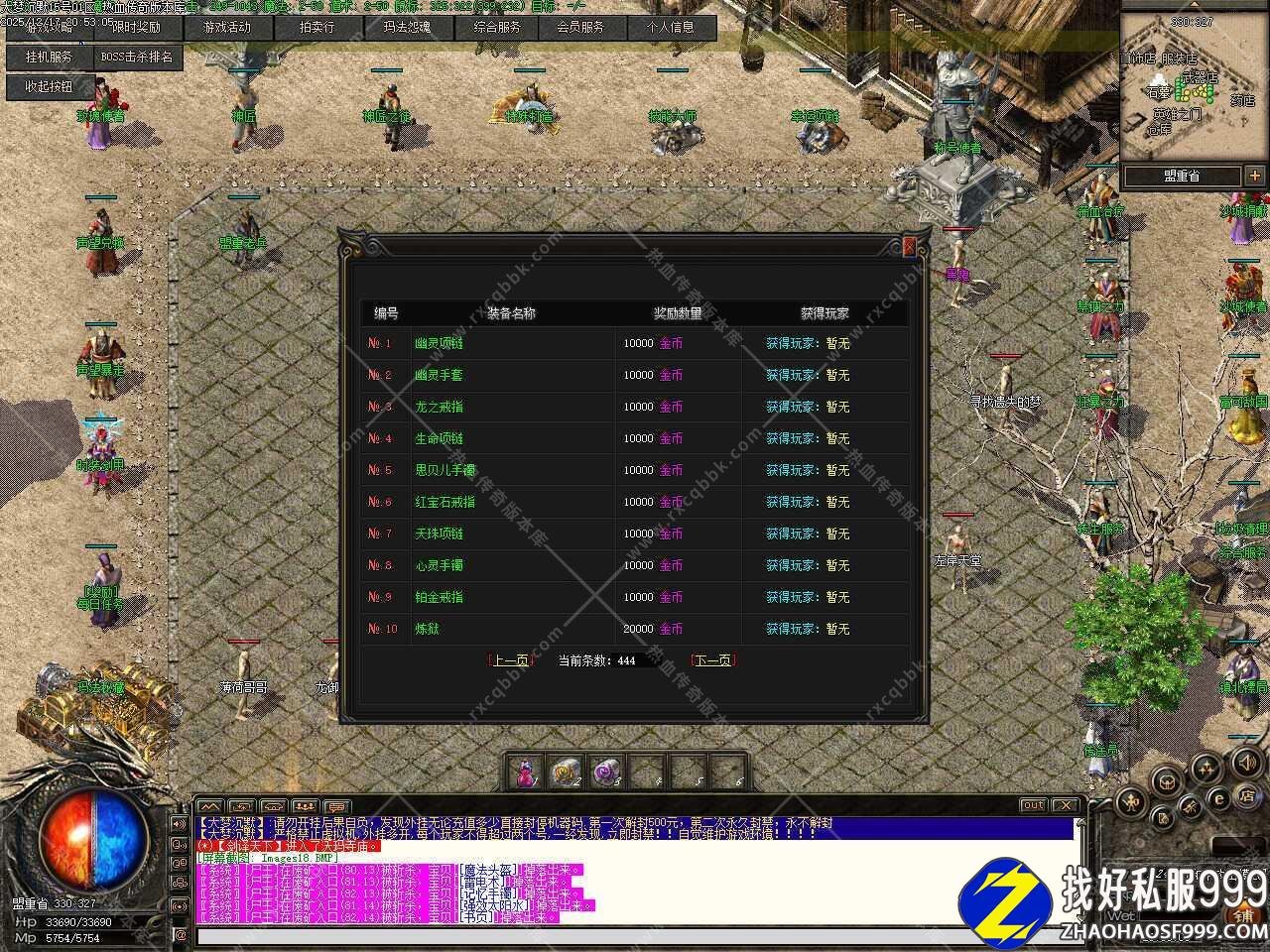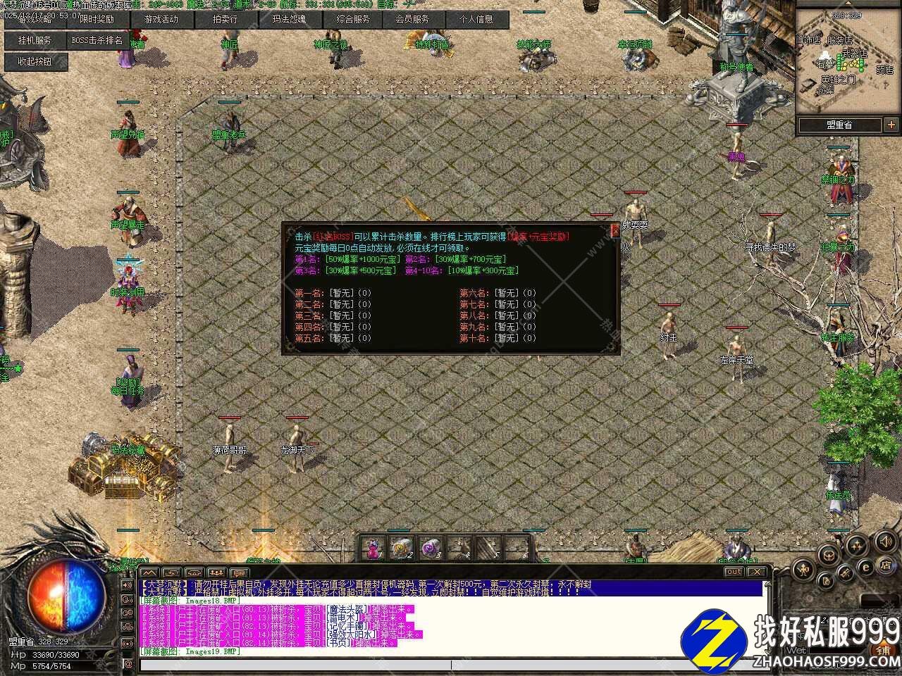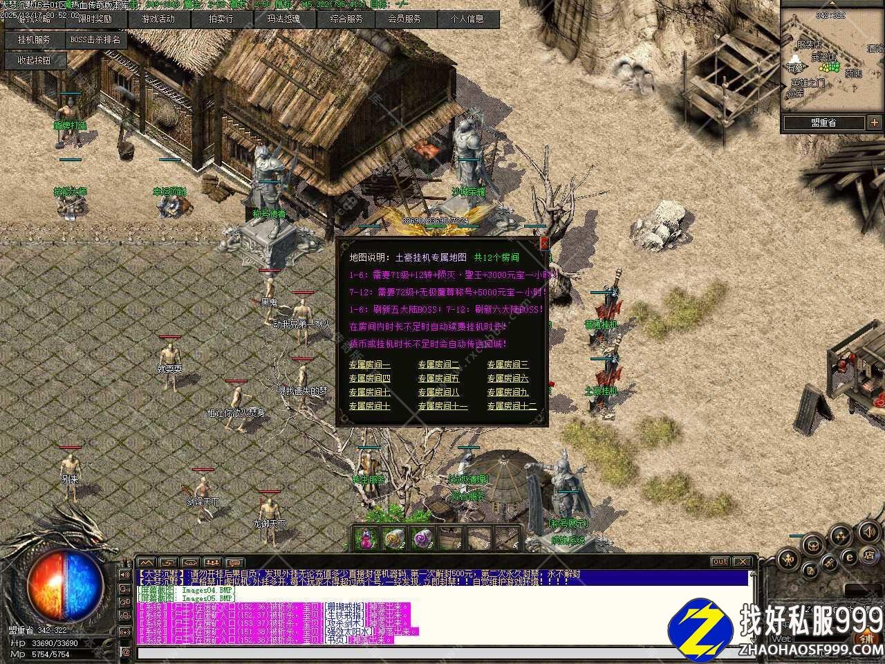 七.上线有基础装备后就四处找BOSS打就行 ,所有BOSS都会掉落充值卷轴,尽快升级到55级,55级之后可在地狱村服用九转神丹升级(全靠打)封顶等级95级,每个地图的每一层都有几只红色BOSS,最后一层刷新橙色BOSS,循序渐进打下去就行。