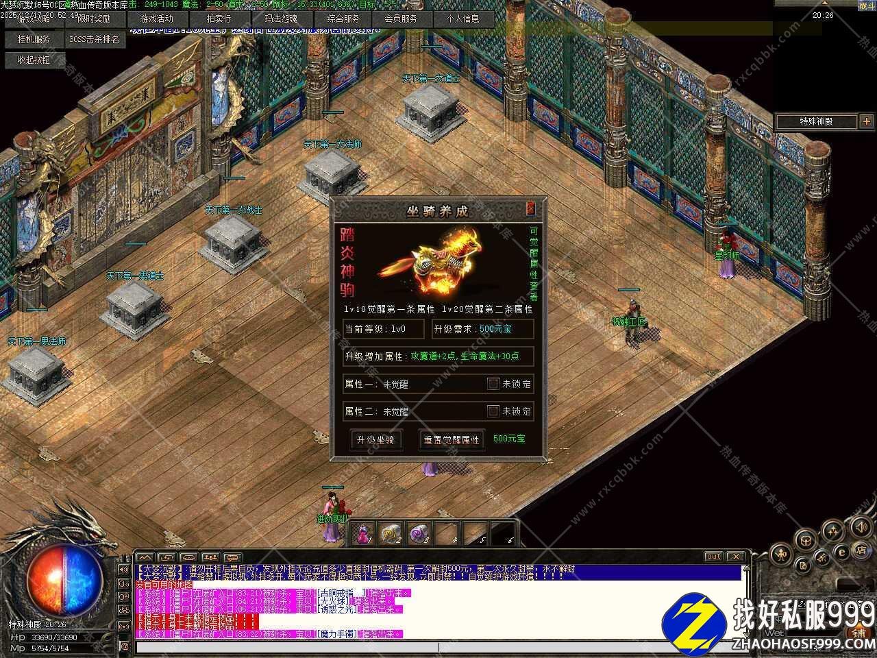 五.新增马牌功能,大梦之园升级,前期优势极大,等级越高附加百分比属性越强。散人玩家可在传送员传送到各大地图升级,会员在会员服务有专门的练级地图。
