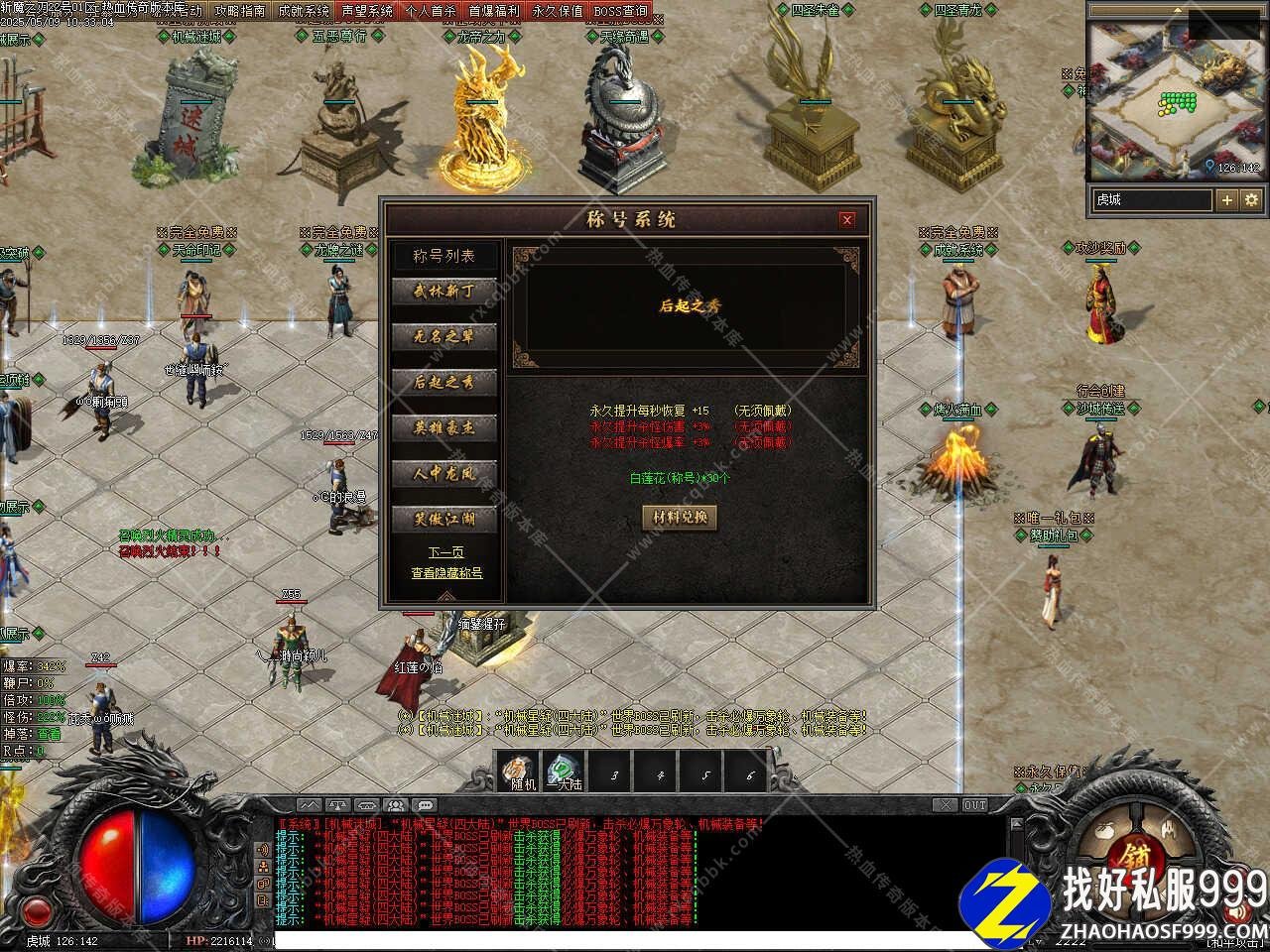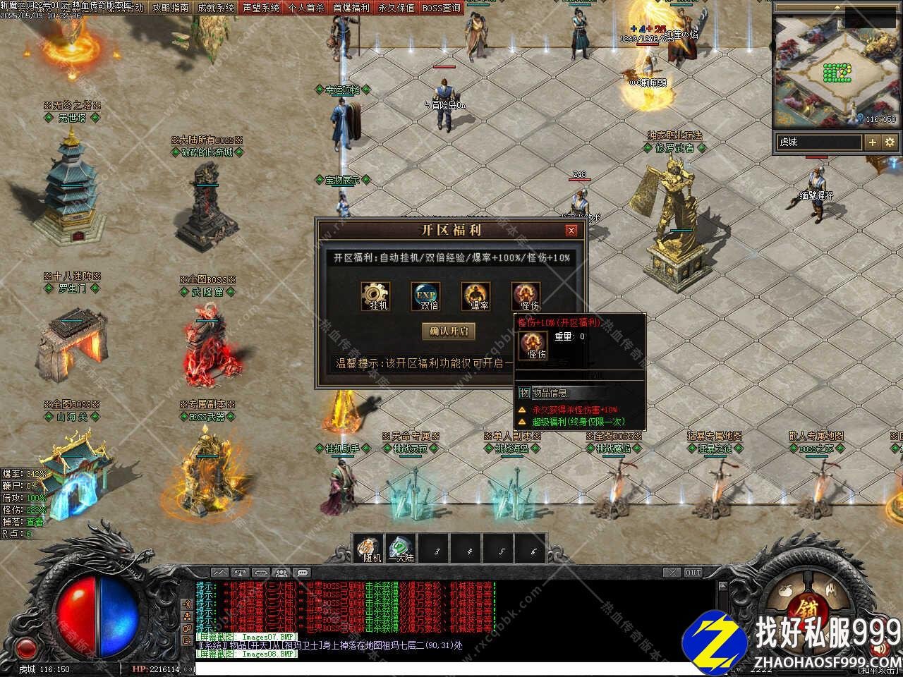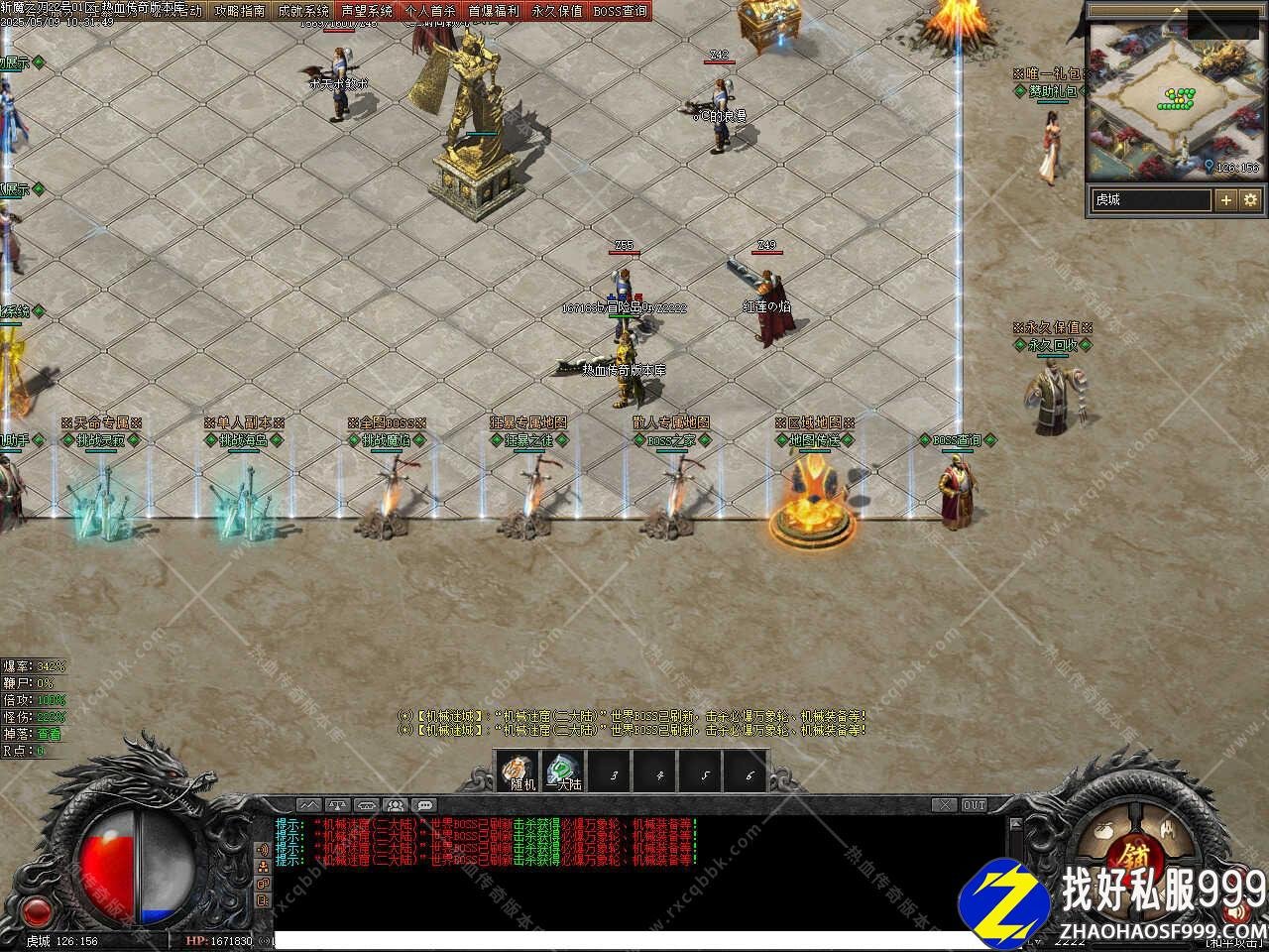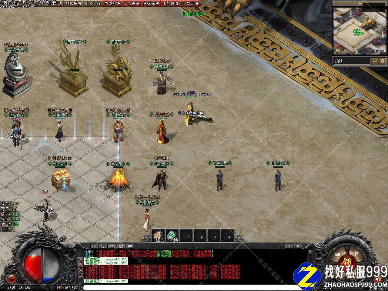 版本介绍:添加装备强化功能,可强化的武器或衣服,任意极品武器或极品衣服可进行强化,武器每个星星额外提升攻击之力+2%(全身攻击百分比),衣服每个星星额外提升血量之力+2%(全身血量百分比),当武器衣服强化到6星同时穿戴获得攻击倍数1.2倍,当武器衣服强化到10星同时穿戴获得攻击倍数1.5倍,同时还可以可随时免费转移武器或衣服,当你的武器衣服强化到6星/8星/10星时,可分别挑战超级地图,刷新全部BOSS,所有世界和野外BOSS和超级福利BOSS。