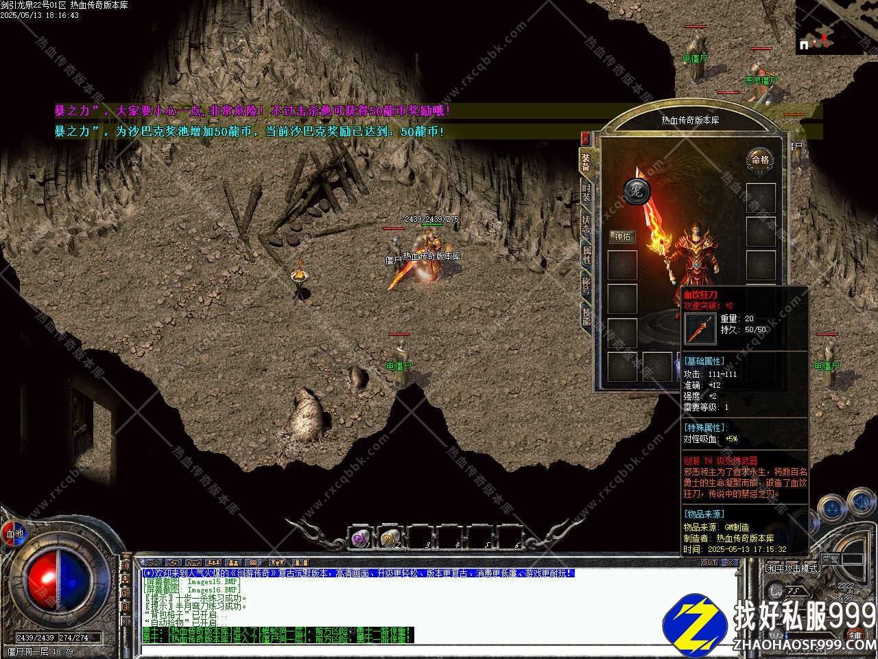 版本介绍:新增高级地图藏经阁,藏经阁中央每2小时刷新一只“地藏王”,打掉落大量经验卷,有几率掉落风林火山等珍稀物品,挑战藏经阁需要开启“狂暴之力”,建议组队前往挑战。 本帖最后由 传奇版本库 于 2025-5-13 21:48 编辑