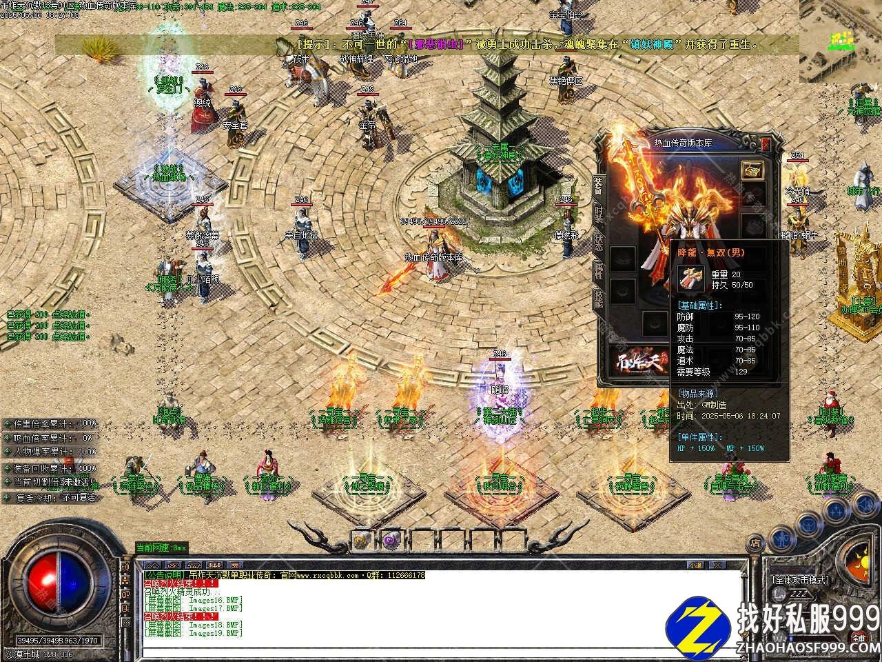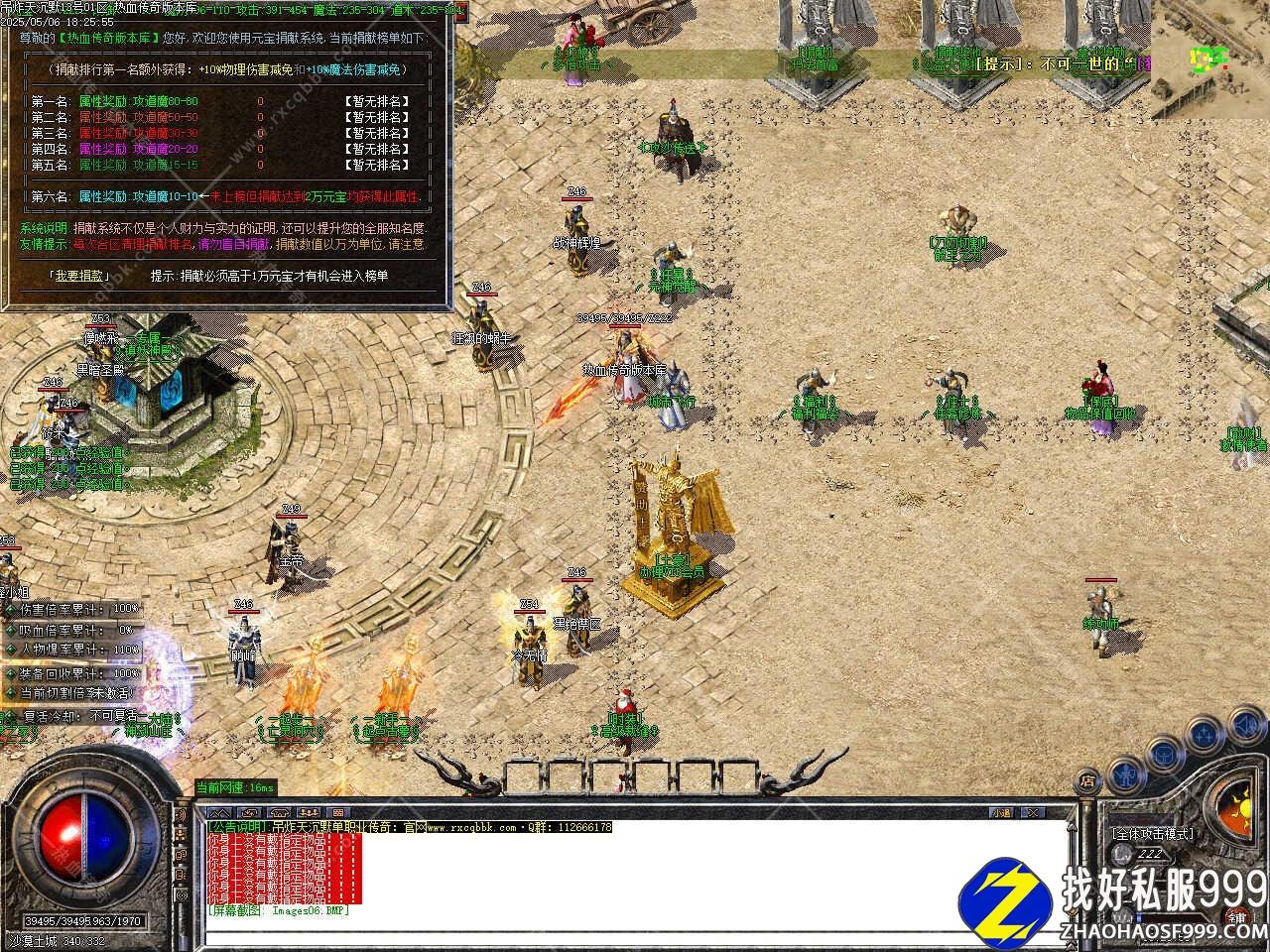 版本介绍:新增热血战场活动,举行主要目的是让各位玛法玩家之间切磋武艺,进入热血战场内秒获得50万经验奖励,打掉一个获得1000元宝奖励,场内玩家所有处于破防御状态,并且强制全体模式,此地图中不许使用道具,不掉元神、不掉装备、自动满血复活,热血战场举行10分钟,首次举行为2次合区20:10点,往后准点举行一次。