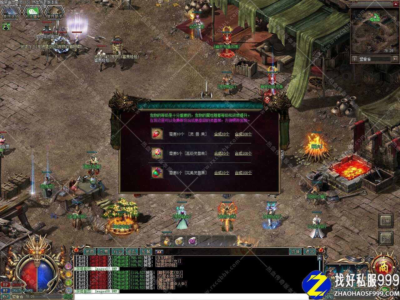 四.添加宠物大师NPC,宠物的品级从低到高依次分为普通、极品、传说、仙灵、天神,宠物只可以攻击怪物,并且宠物会将自身5%的攻魔道转换给人物,宠物的品级越高,初始属性和资质上限越高,并且转换给人物的攻魔道总数也越高。可以喂养宠物灵兽果,来提升宠物的经验等级,无用的宠物蛋也可以进行回收。