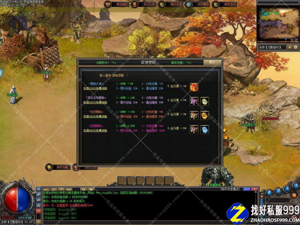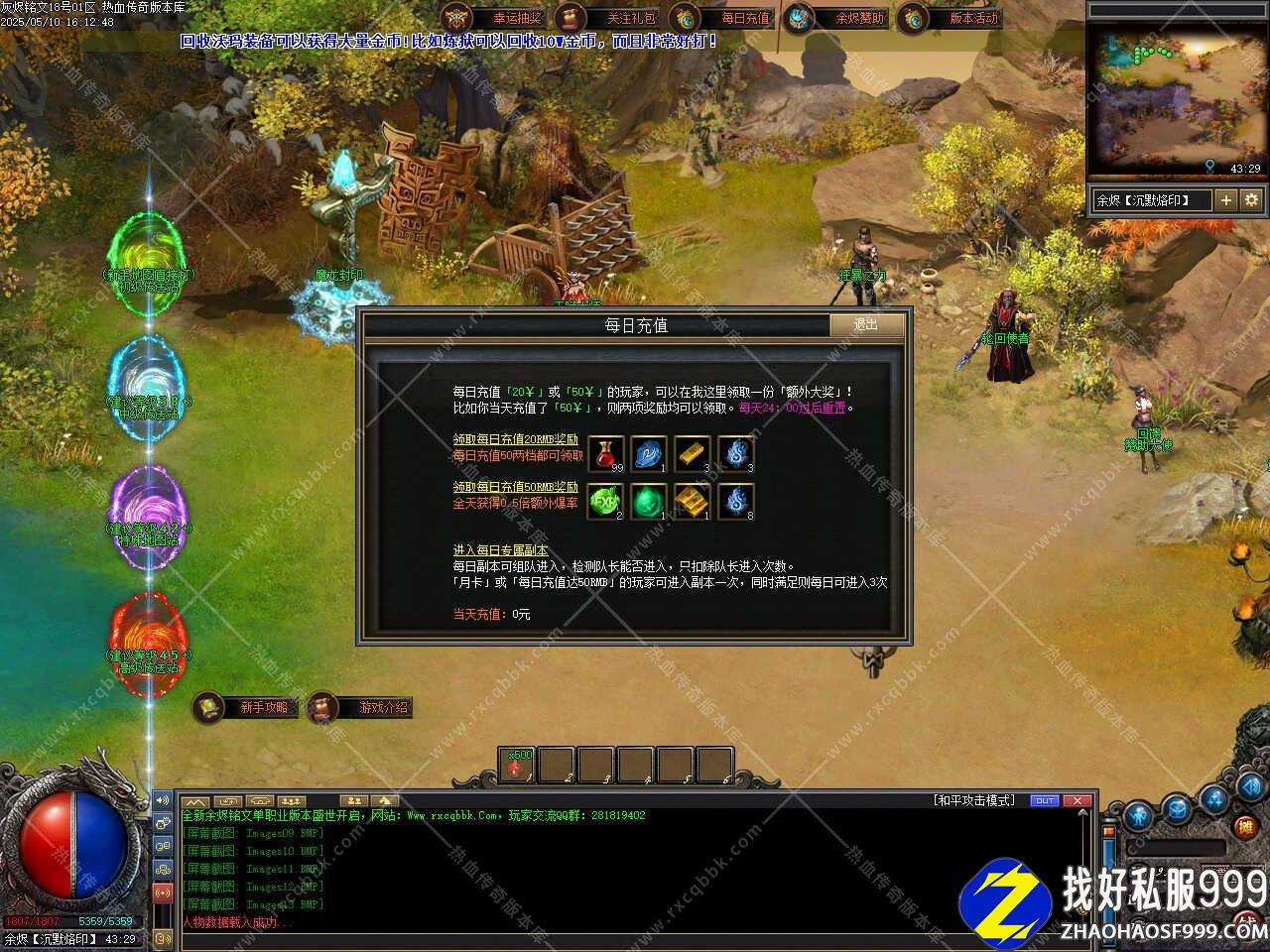 一、此版本回收沃玛装备可以获得大量金币,比如炼狱可以回收10W金币,而且非常好打,荣誉值的唯一获取途径是回收装备,荣誉值可以用来合成装备,也可以直接兑换成经验值,此zhaosf发布网服务端版本补丁大小13.80GB,游戏兑换码:999999。