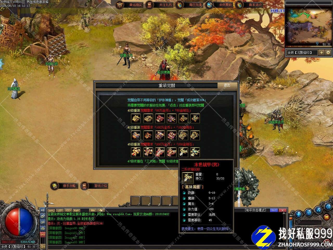 九、45级以上的玩家可以进入镇魂塔,每日进入2次。消耗的灵符回收特殊装备获得,里面每层都有BOSS,地藏王是个非常富有的BOSS,携带了屠龙、魔法之魂、漆黑刀剑这三大神器,获得一把即可实力大增, 即便是最初级的BOSS:远古尸王,也都有可能掉落40级套装和45级散件装备,就看你的运气了。