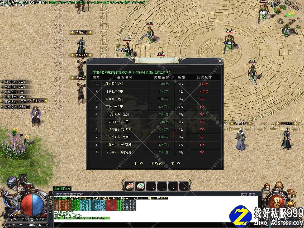 五、添加狂暴模式,开启狂暴模式需要50游戏点,获得神技永久不掉,还可获得1.1倍攻属性提升且升华,全属性+50、打怪伤害+20%、攻击伤害+20%,被其它玩家打掉后状态无敌。