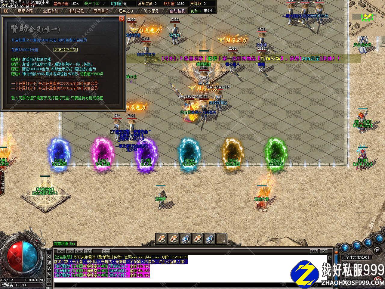 一、此服务端补有6.25GB,所有的PAK补丁全部一次加密,测试客户端为17周年纯净客户端,游戏兑换码:666666,版本带有假人,自动上线。