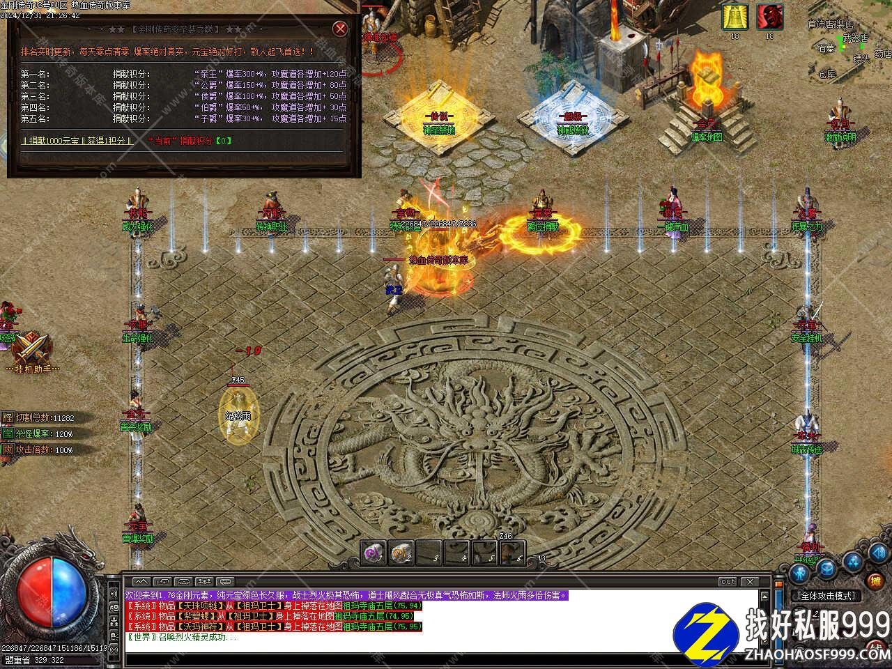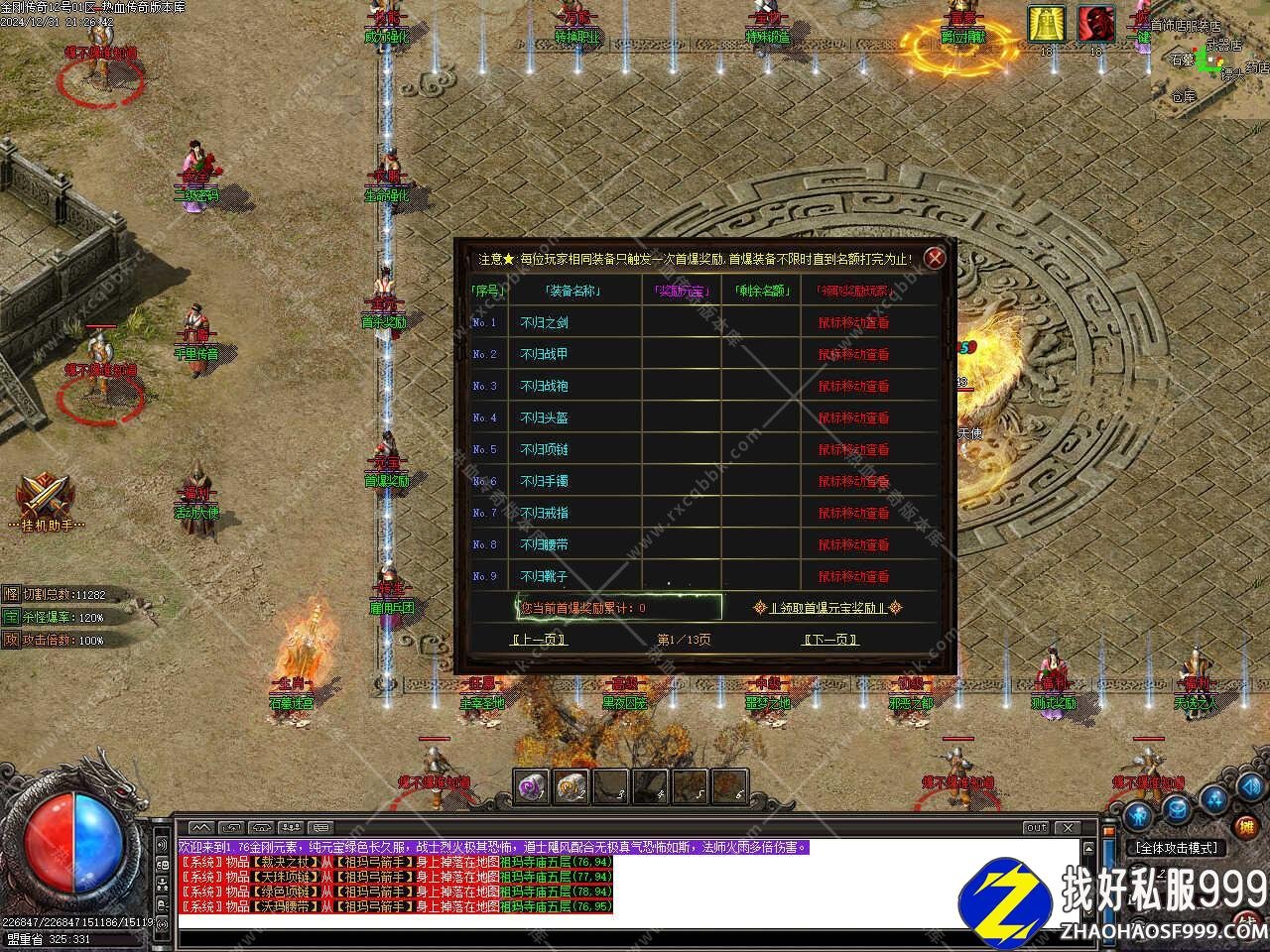 版本介绍:1.76金刚传奇,主打极品和元素,元宝服,纯绿色,1-70级泡点升级,65级以后只能各地图打经验卷升级。