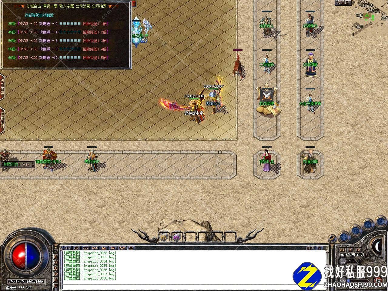 版本介绍:新增盘古殿高级地图,刷新魔龙教主系列、MAX系列等怪物,小怪30分钟刷,神龙boss60分钟刷,★Boss90分钟刷,福利Boss120分钟刷新一次,爆各种装备。