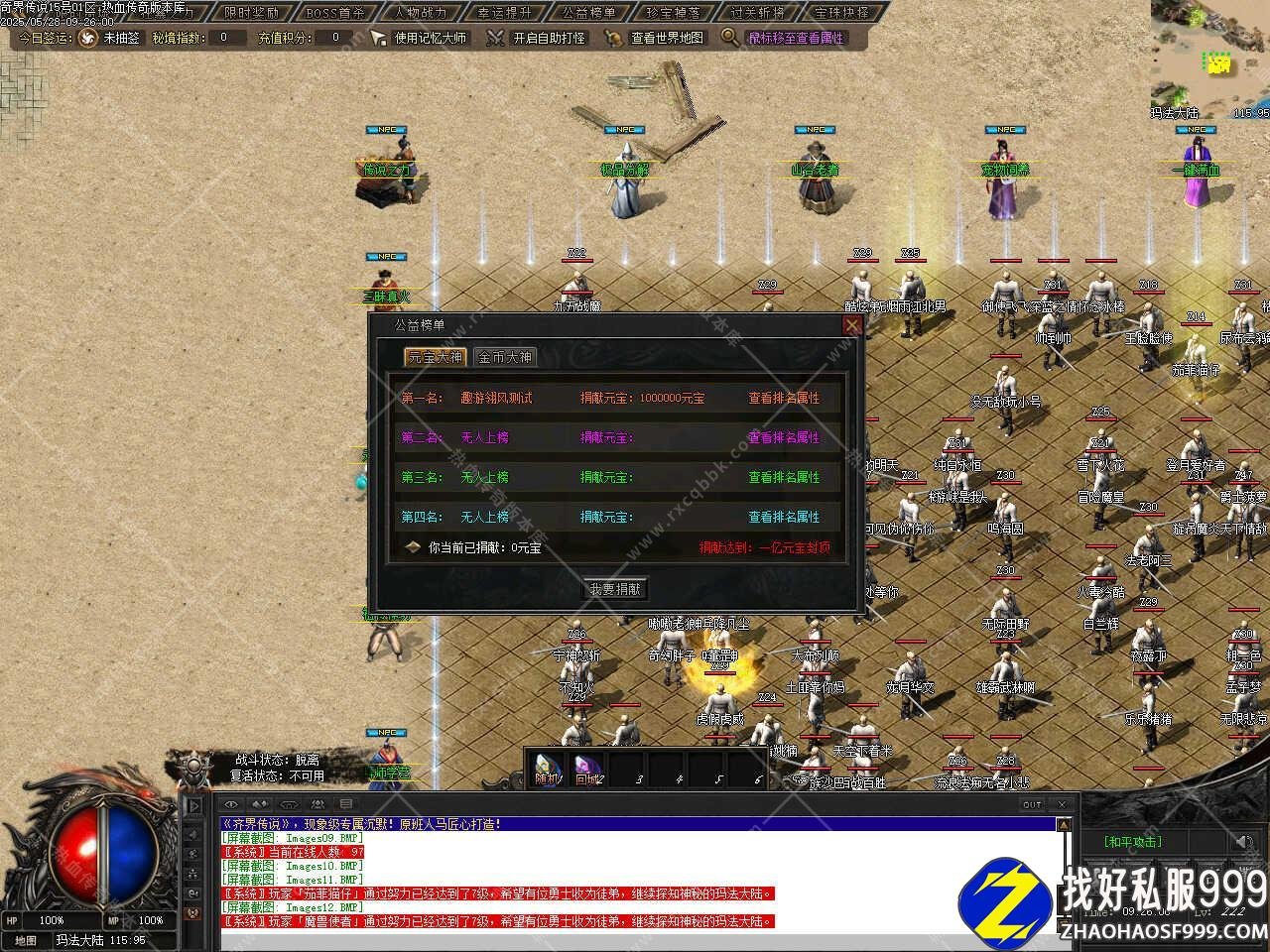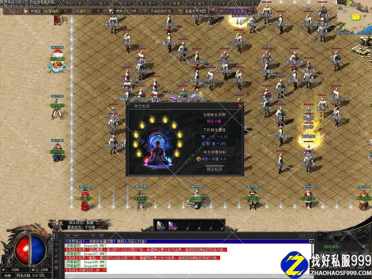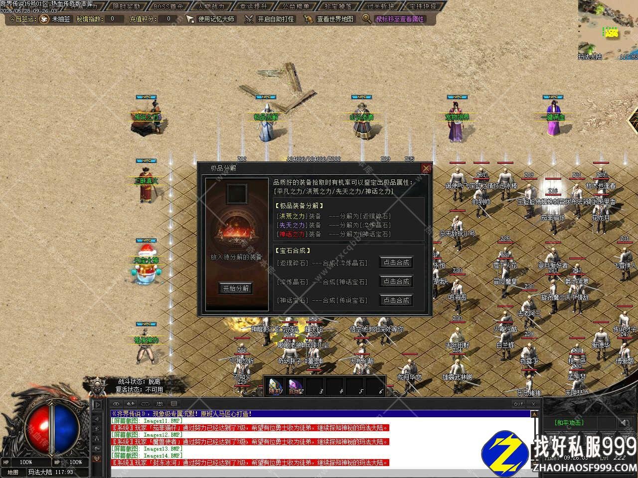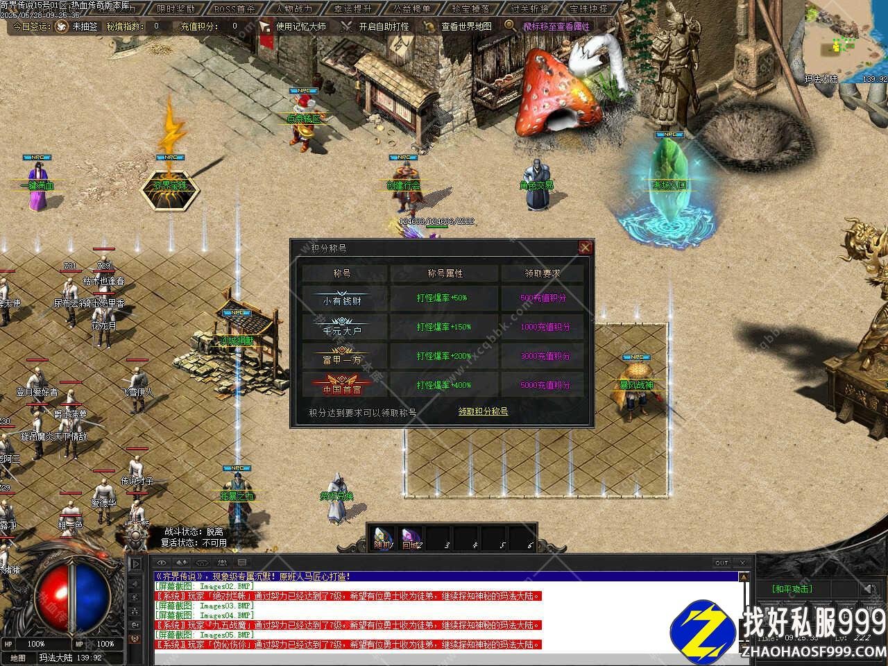 六、此传奇版本中有多个大地图,每个大地图设置要求不一样,同时每个大地图中有些功能也不一样,在游戏时可仔细看一下各大地图中的NPC设置和功能,以免需要时找不到相关功能要去哪个NPC那里,更多的功能和玩法请进版本中查看哦。
