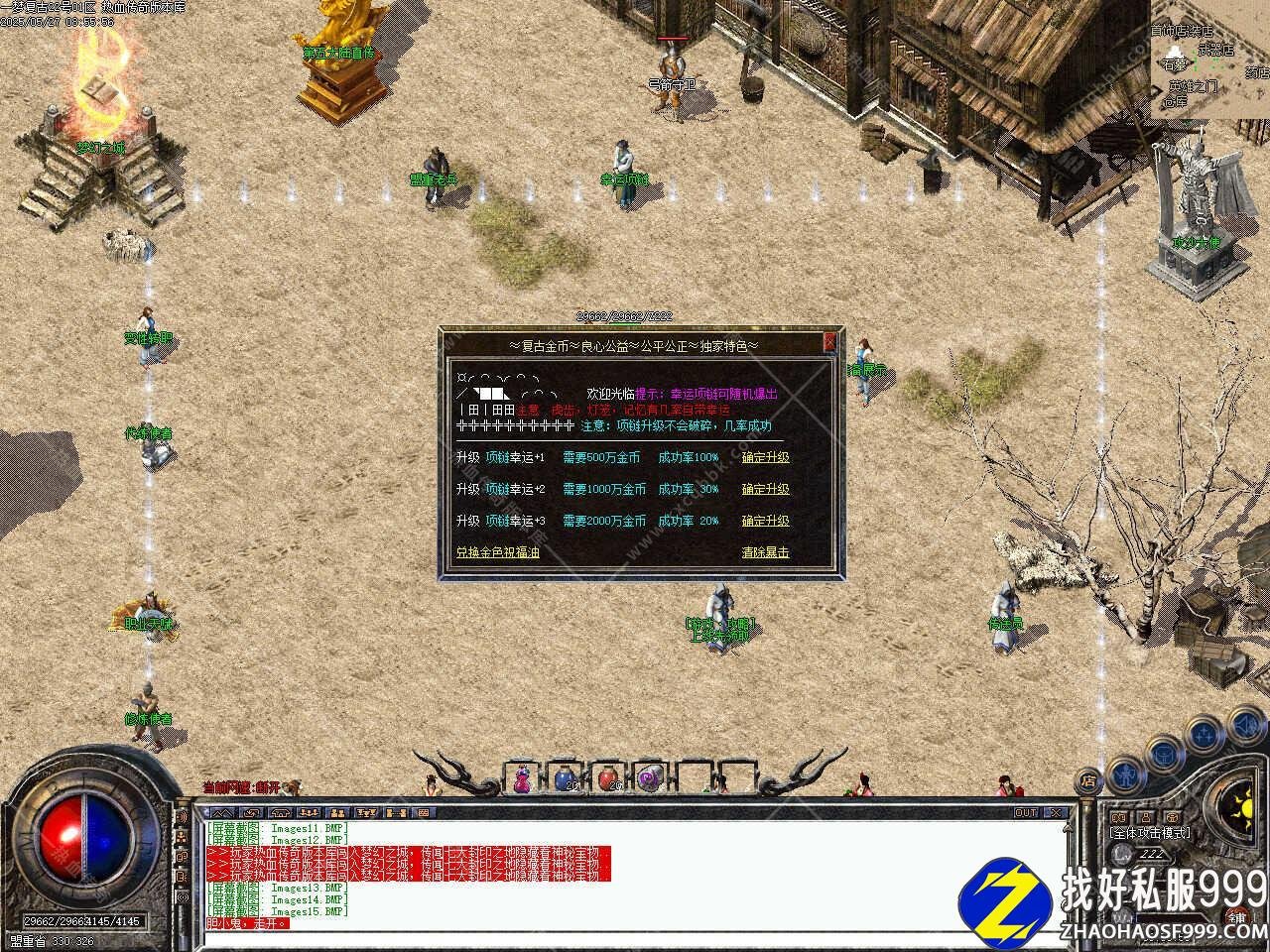 五、此版本幸运好加,幸运项链可随机爆出,注意: 虎齿,灯笼,记忆有几率自带幸运,项链升级不会破碎,有几率成功,升级项链幸运+1需要500万金币,成功率100%;升级项链幸运+2需要1000万金币,成功率30%;升级项链幸运+3需要2000万金币,成功率20%,升级运3随机升1-3点暴击,属性不满意可以清除属性,清除属性幸运将变回运2。