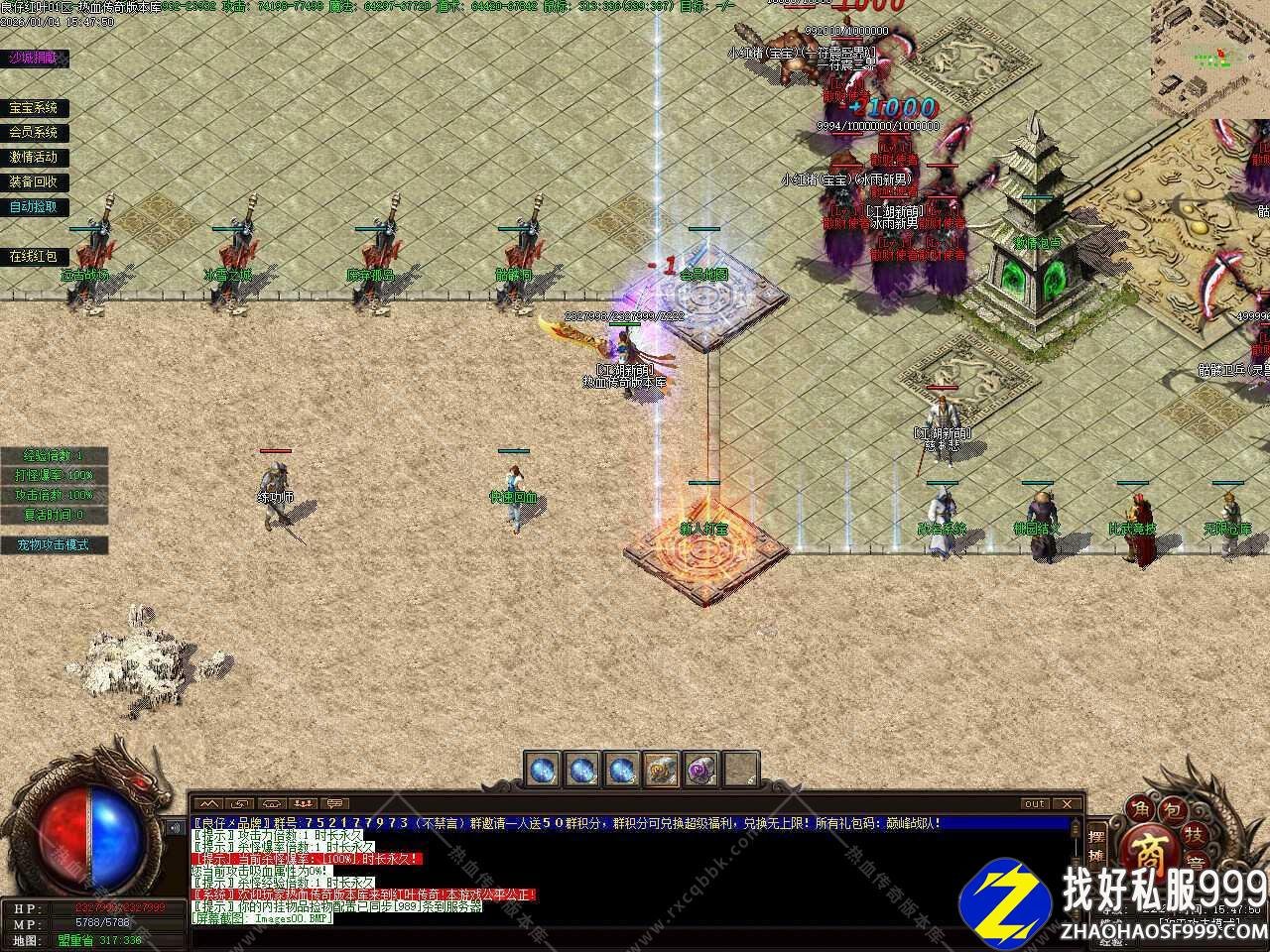 二.本服为长期服,长久更新,用心运营,进服先到土城右下角QQ群礼包处领取新手启动装备,装备的获得分为怪物掉落、普通打造、强化打造等三种途径。优化宝宝功能!直接分为宝宝、灵兽、兽王、仙兽、神兽和五个级别!但每个级别的的宠物也有强有弱!所有的宠物游戏里均可爆出。
