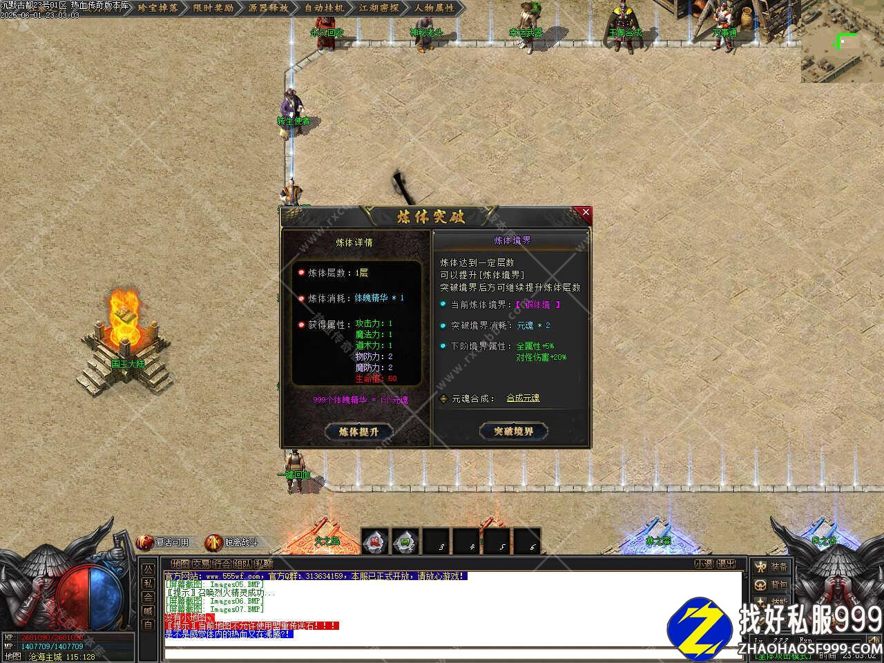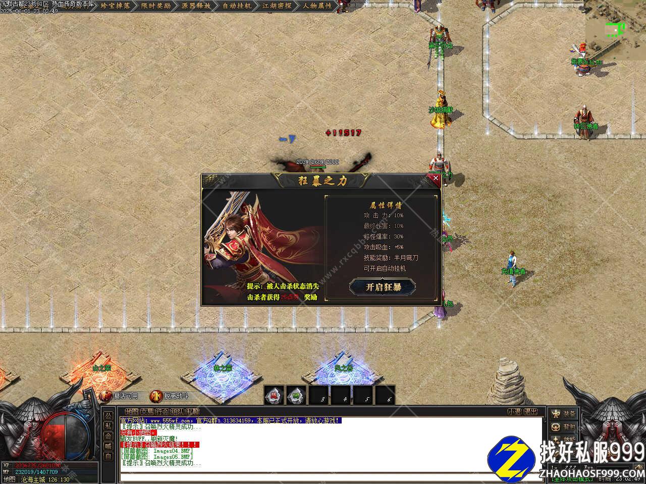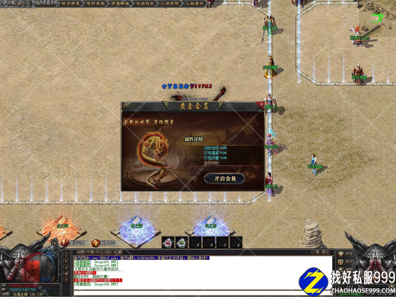 三、添加多个福利活动,活动一:动一下试试,此活动地图掉落大量装备和材料,新区30分钟后开放一次,地图内仅可使用随机传送道具,走动将会被传送回主城;活动二:爆不爆谁知道,此活动地图刷新100只怪物,仅有十只为真爆怪,新区60分钟后开放一次,活动地图内怪物可爆出大量神器财宝。