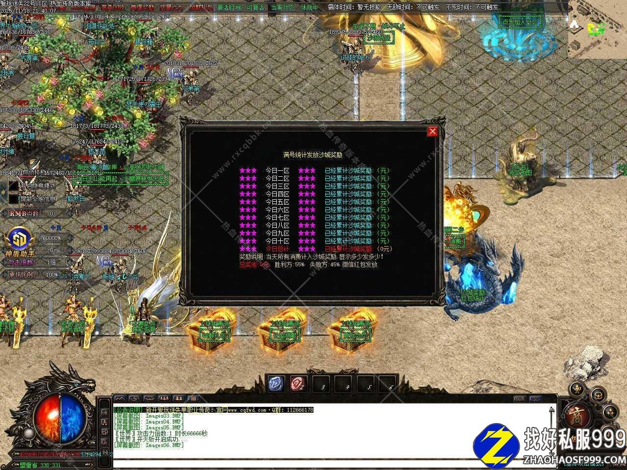 六.新增荣誉点捐献系统,第一名属性奖励全元素+10%,捐献第一名可以额外获得等级+2,第二名额外获得等级+1,合区清理,每天0点清理,各大地图均可爆出荣誉点,只要你有足够的时间,富豪不是梦。
