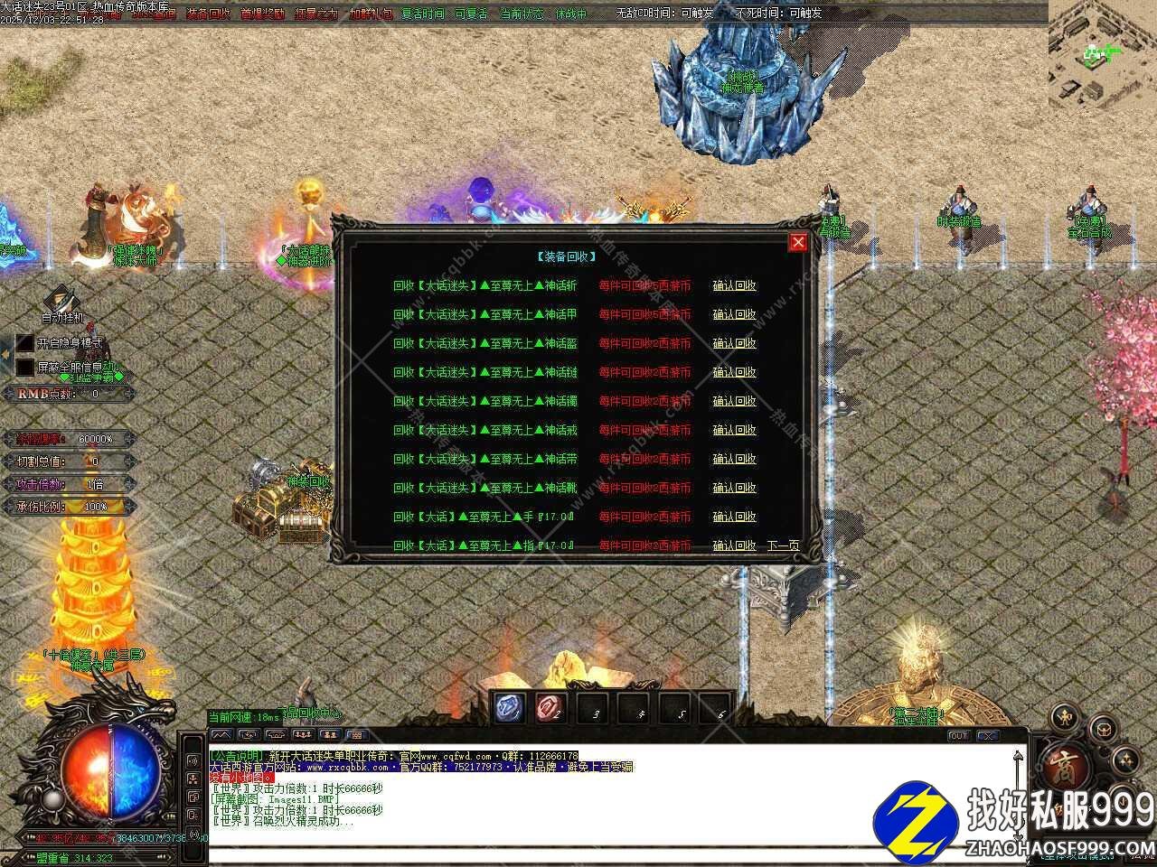 五.本服属于纯元宝服,无回馈,无沙捐,无赞助,一切免费,元宝可以自动打怪获得,后期一个小时可以打上千万元宝。
