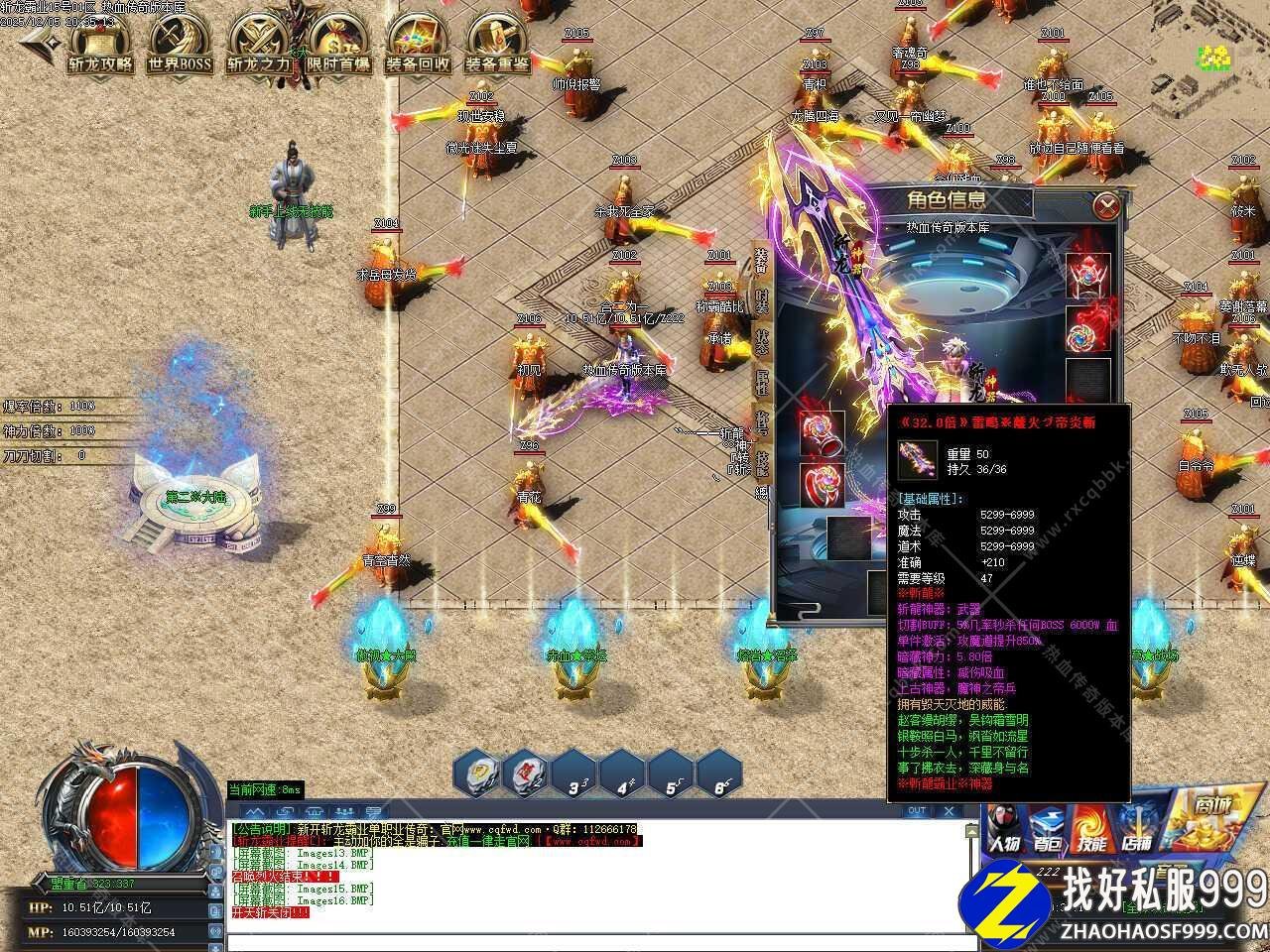 七.新增斩龙霸业BUFF功能,此BUFF带神力和爆率倍增等属性,获得【斩龙霸业BUFF】1%几率直接打掉3*3范围所有玩家和怪物,爆率增加999%,打怪爆满屏,**方式简单不繁琐,只需要99999金币和达到240级即可。