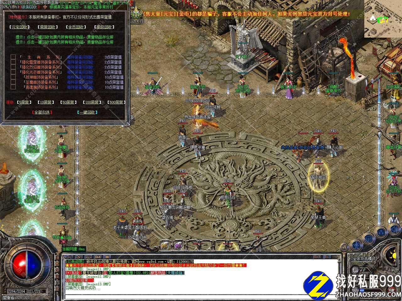 二.本服180战神复古,60级满级,上线免费随身经验到58级,装备:赤月-雷霆-强化-战神,为增加耐玩性添加小极品+5功能。