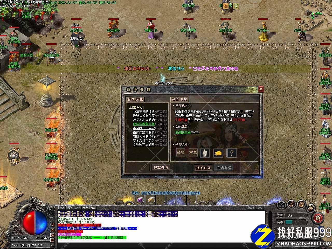 版本介绍:启动时M2上脚本报错是因为没有加载ESP插件,不影响游戏,但大背包捡物等功能不能使用,需要的自行打开ESP控制台选择服务端目录点安装,其它地方不需要动。为避免插件不能使用时无法启动服务端,站长没有加载插件。