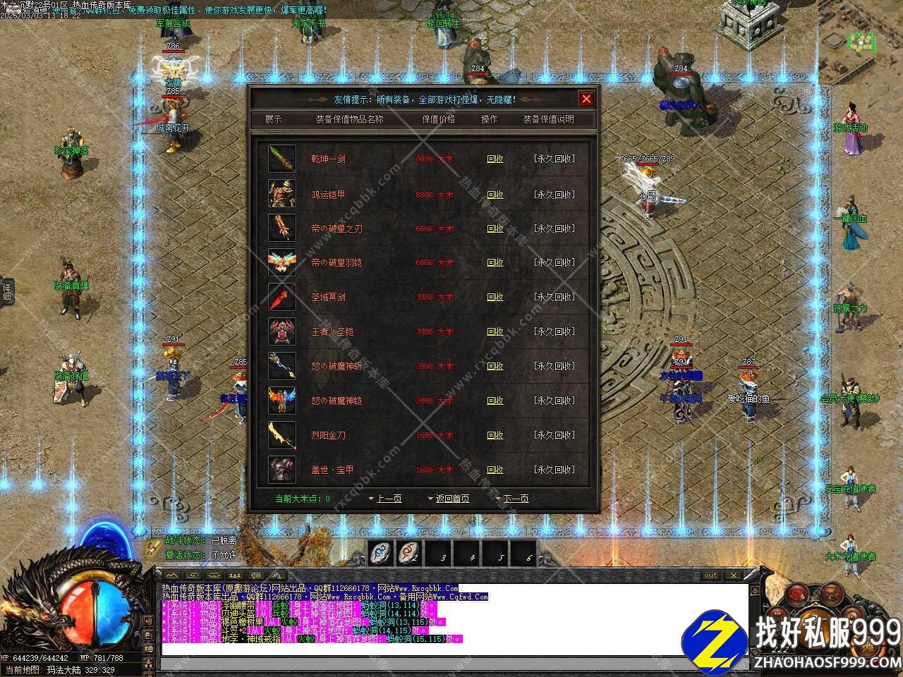 版本介绍:新增潜龙峡谷终极地图,怪物刷新速度很快,需要5转才能进入,本地图可以爆出所有装备5爆率适中,长久版本。