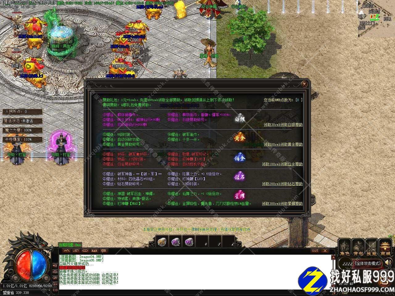 八、本服为长久服,封速封挂,长久更新,此次更新至微端引擎,六大陆地图若干,每张地图都有2-3层,BOSS强大,不要想着一步登天,慢慢打装备下地图是比较好的选择。