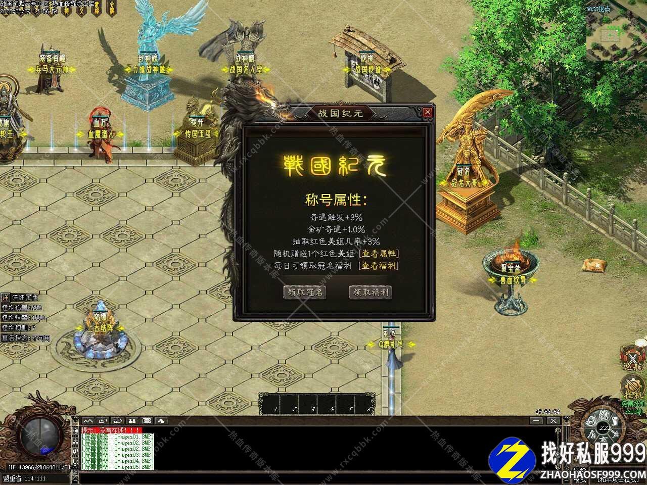 三、新增公测福利功能,自动记录(首爆、回收)元宝、刀币和通宝等,正式开区使用公测账号登录即可,无需重新创建账号,普通玩家领取50%测试记录,战国统帅领取100%测试记录。