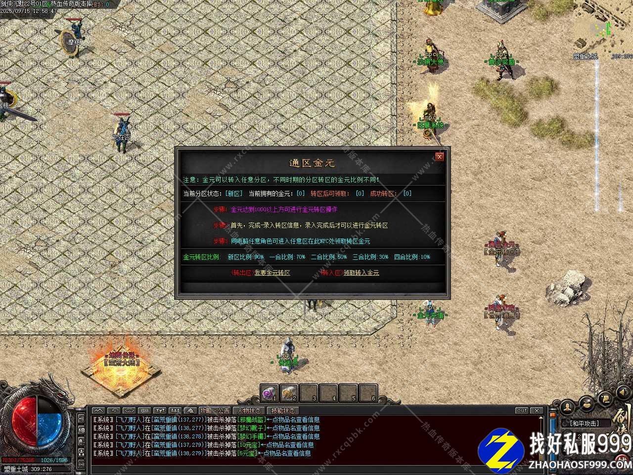 三、本服新增特戒等功能,在游戏中前往漠北边塞地图,其中石槽矿区(出产定身)—远古石墓(出产复活)特戒。在蛮荒重镇有一个剑甲鉴定攻击速度的NPC,每件武器第一次鉴定都是免费的,所有打到的武器都不要放过哦,弄不好就搞到了高攻速属性!