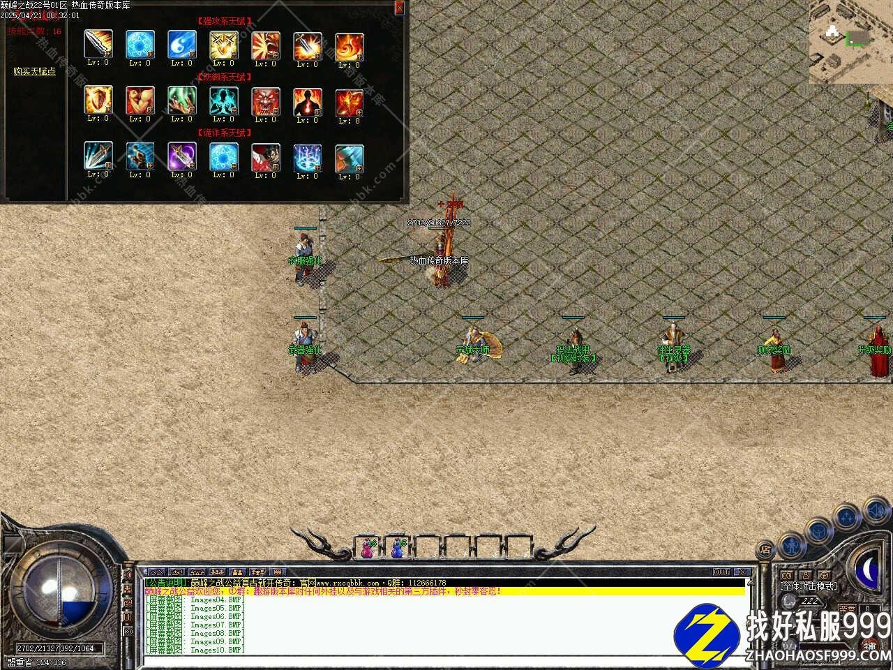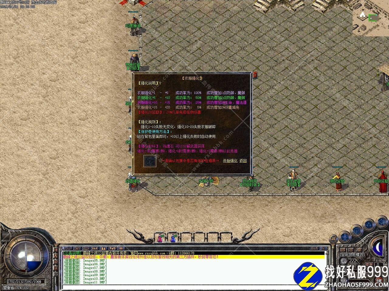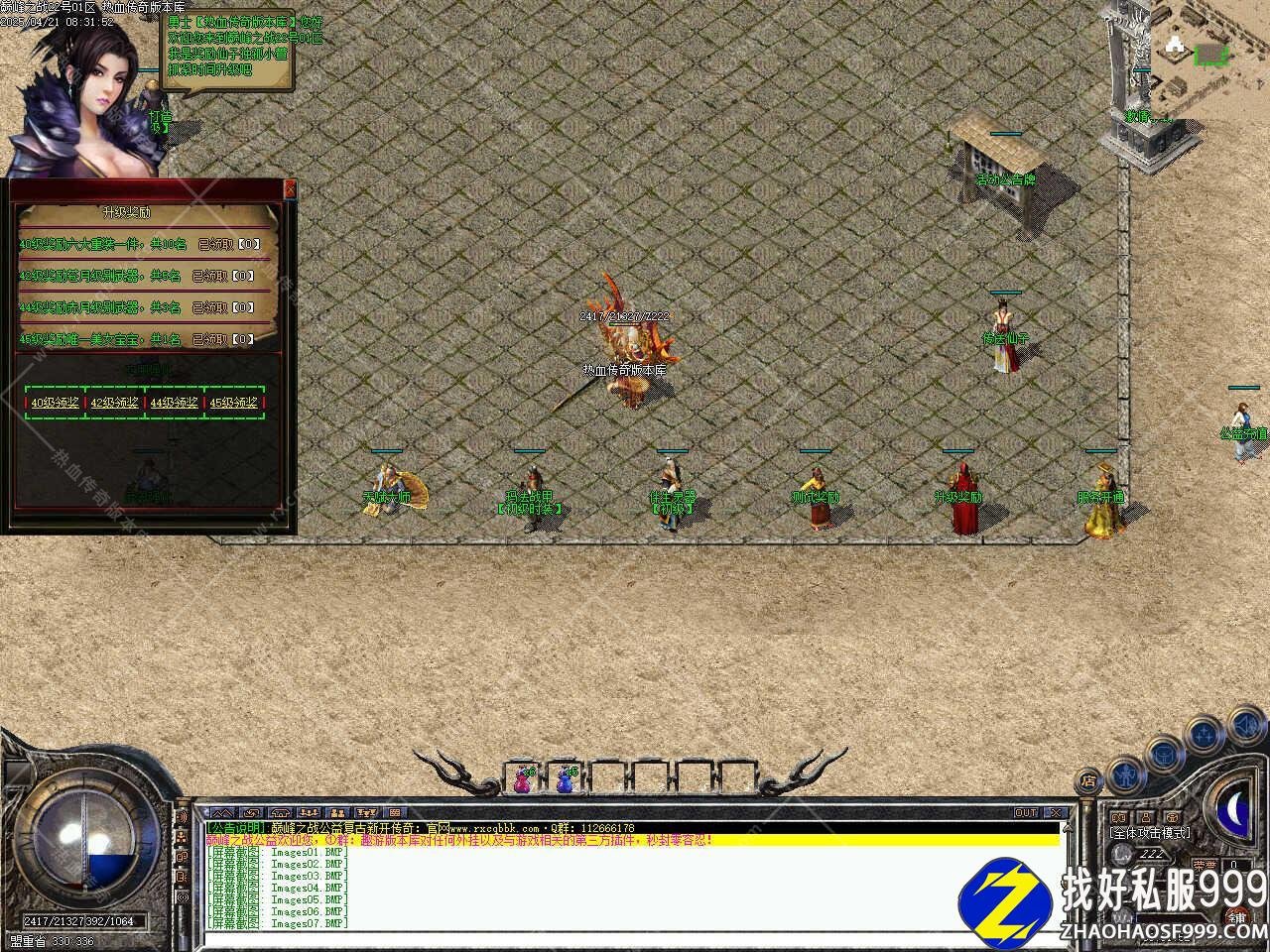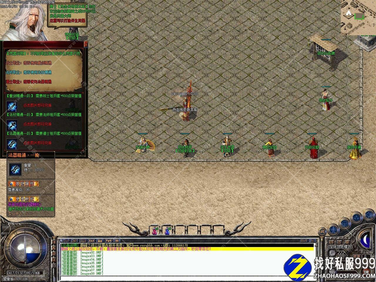 版本介绍:新增争霸活动,活动时间为开区前三天,每天12点-20点每隔2小时开启一次,在活动地图会刷新一只教主,HP比较多、0防、低攻,打掉后将随机沃玛级装备8个、祖玛级装备4个、金条一个、镇妖令一个,同时还会随机给10-20公益币。