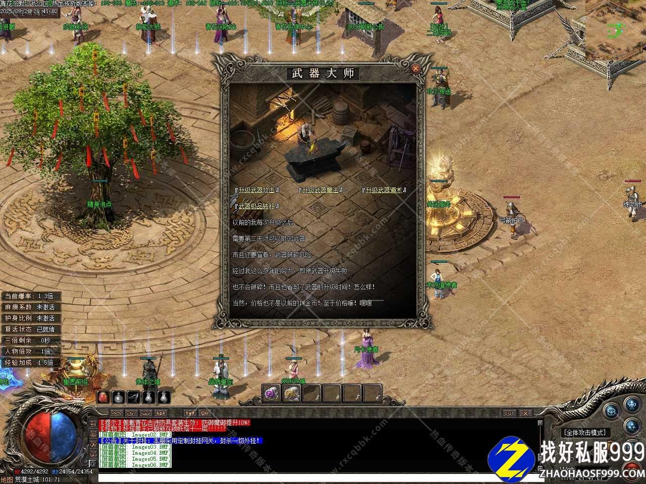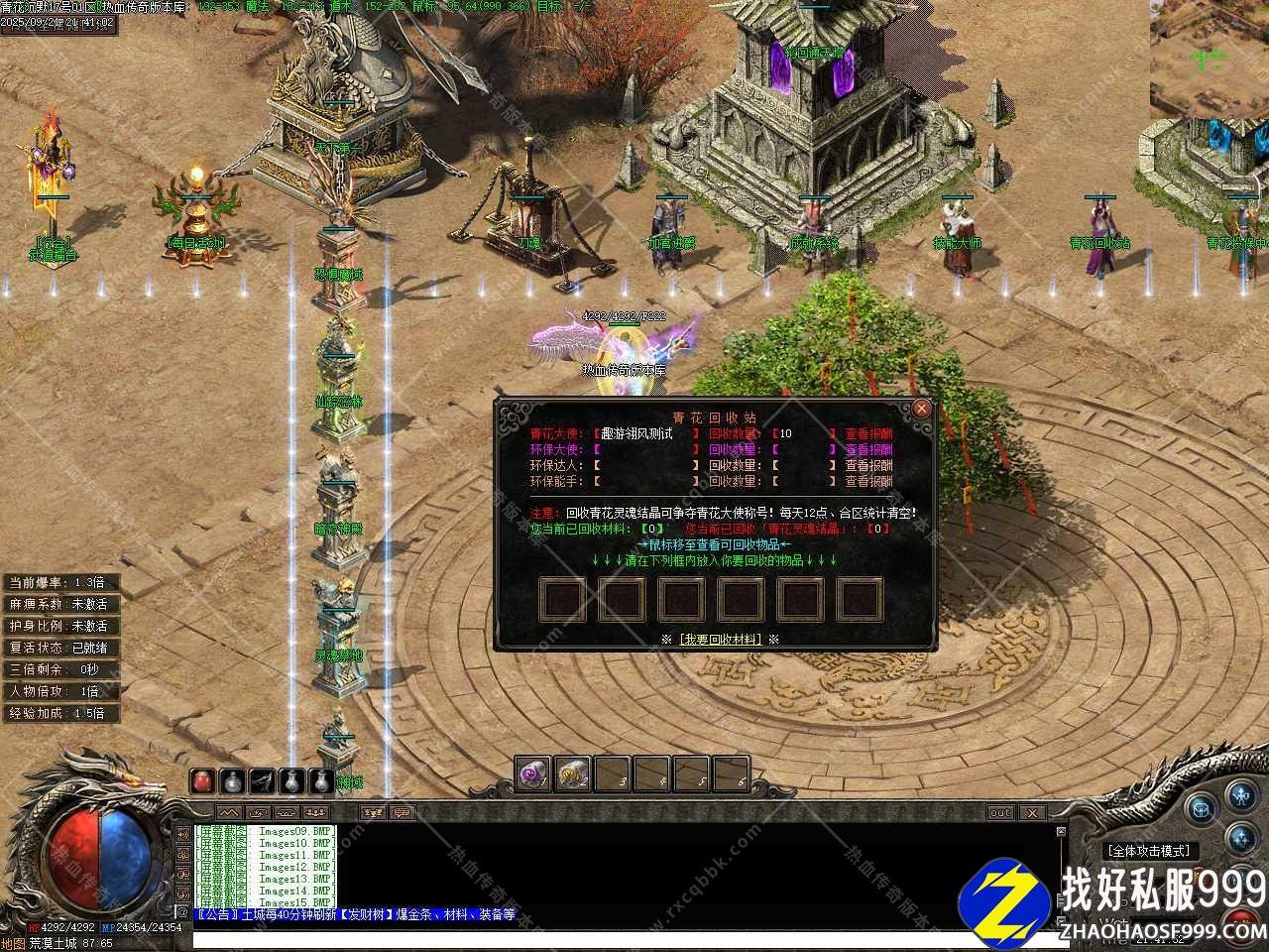 八、土城每40分钟刷新【发财树】爆金条、材料、装备等,前期建议双开,战士挂机,法道打装备。
