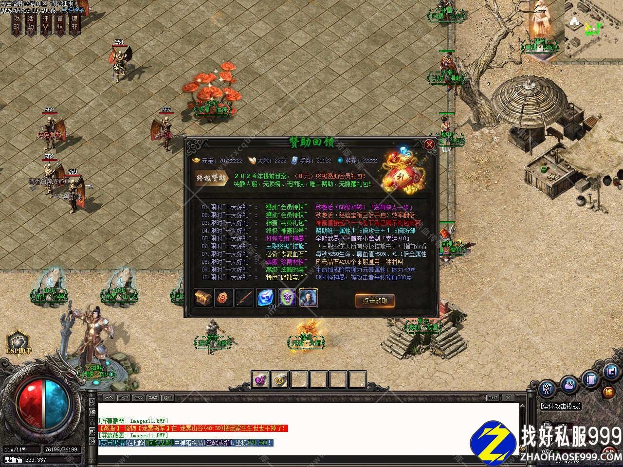 一、此版本属于1.76三职业攻速小极品带假人版本,特色新玩法,复古新思路,趣味不浮夸,上线就送自动回收捡取功能,耗时一年,倾情打造,独创玩法,散人首选,此版本单独补丁2.16GB,全新版本,全新玩法,全新装备,装备全爆,游戏兑换码是666888、888888