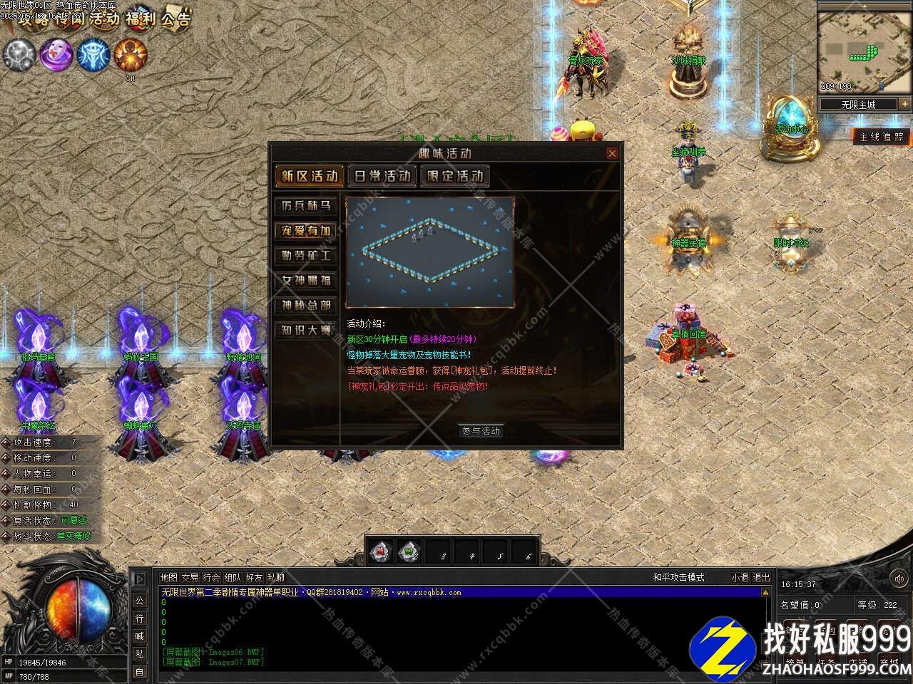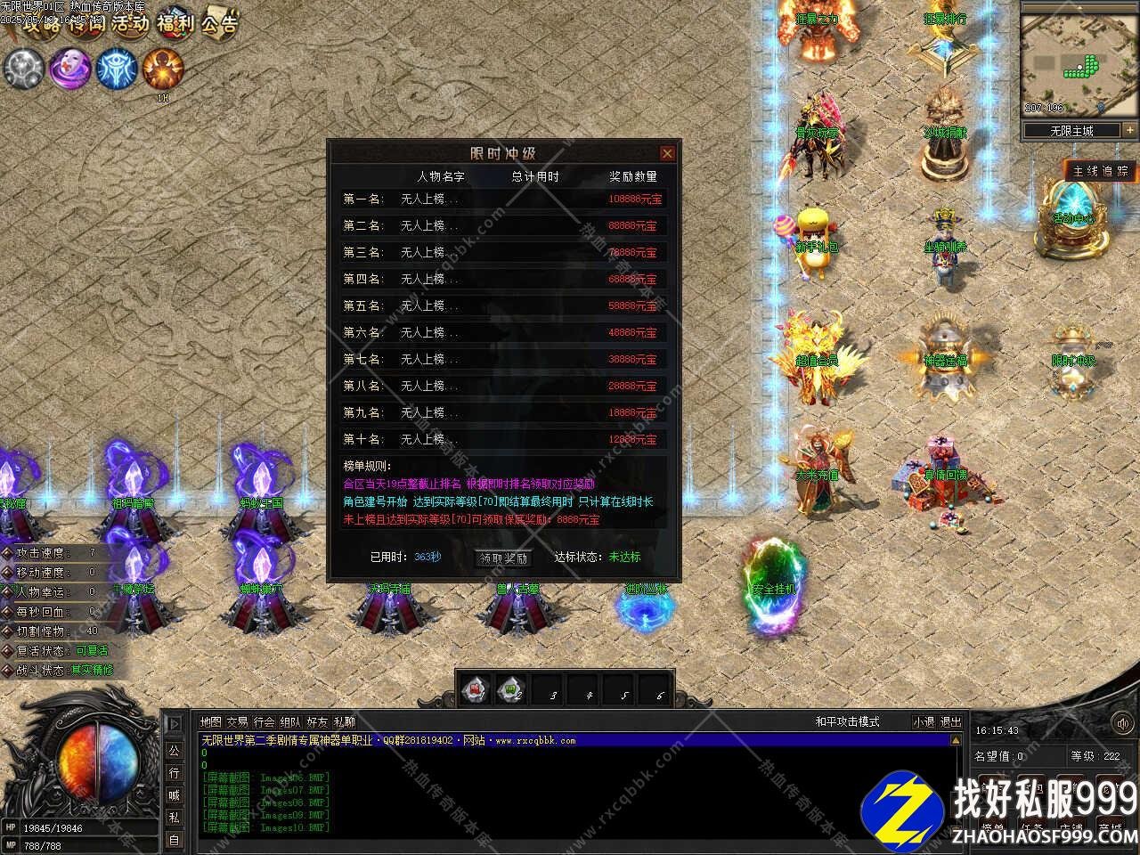 版本介绍:玩家上线后可先扛怪特殊四件套,接着升转生和等级,名望值多就点点称号,另外打到奇迹宝箱一定要开哦,要提升发展效率,可尽快给装备上铭文。