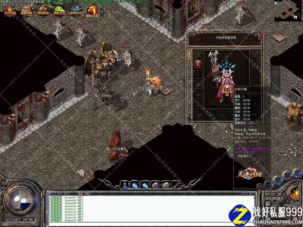 版本介绍:此传奇版本各大地图都刷新龙王,赤月装备咔咔的,长久装备由神秘古墓最后一层NPC进入,最后一层刷新6大BOSS,神秘古墓有很多神秘NPC,转生,提升爆率等等。