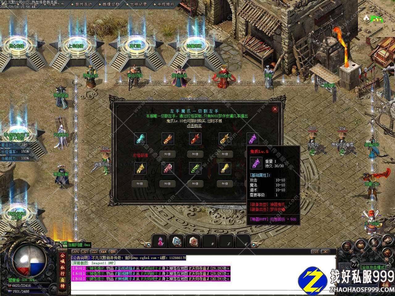 三、本服赞助的打赏前5级在一大陆左上角特殊合成NPC那合成,后5级在二路右下角神器锻造NPC那合成,建议双开,小号挂机打金币材料等,速度会快许多。