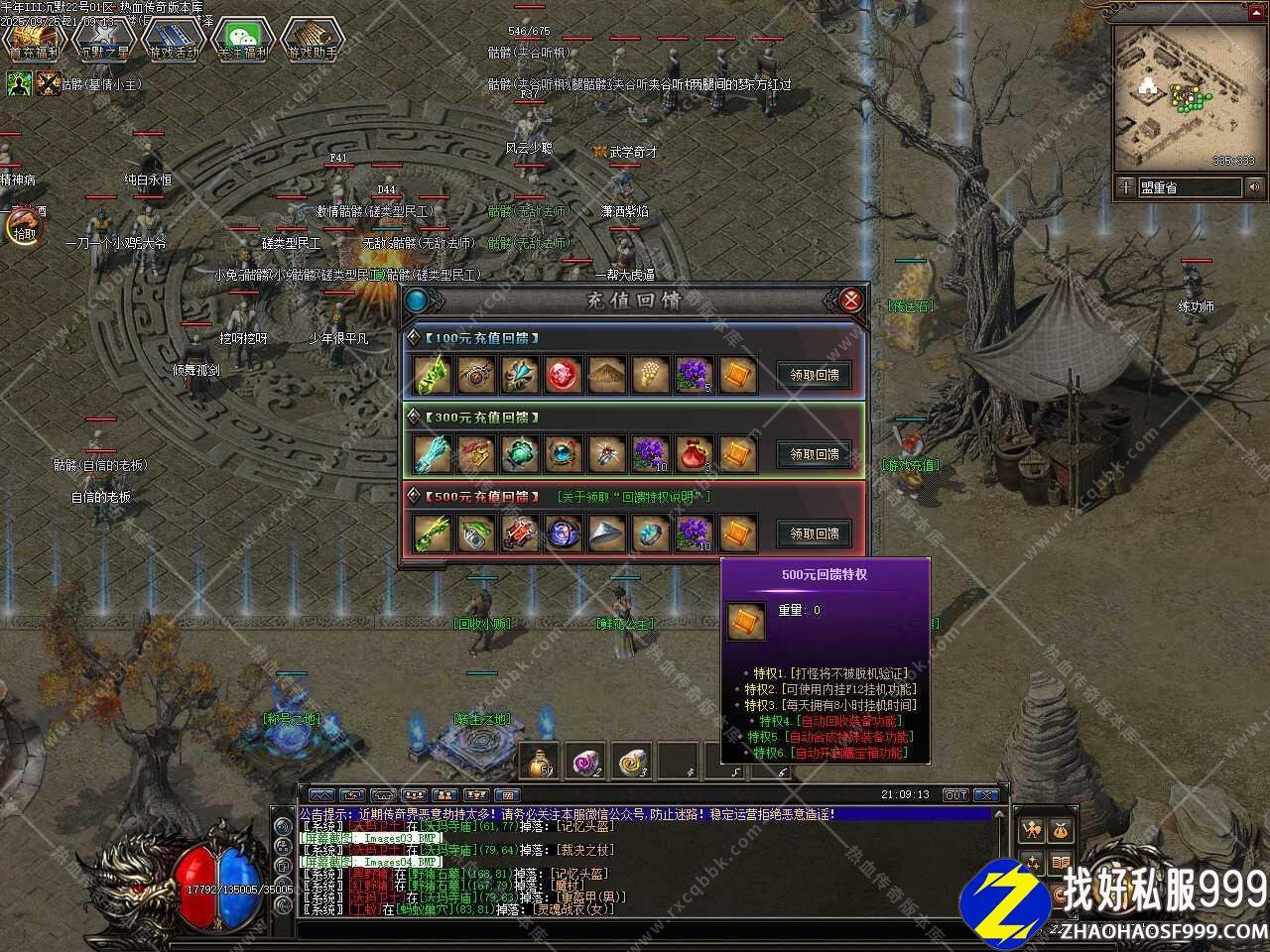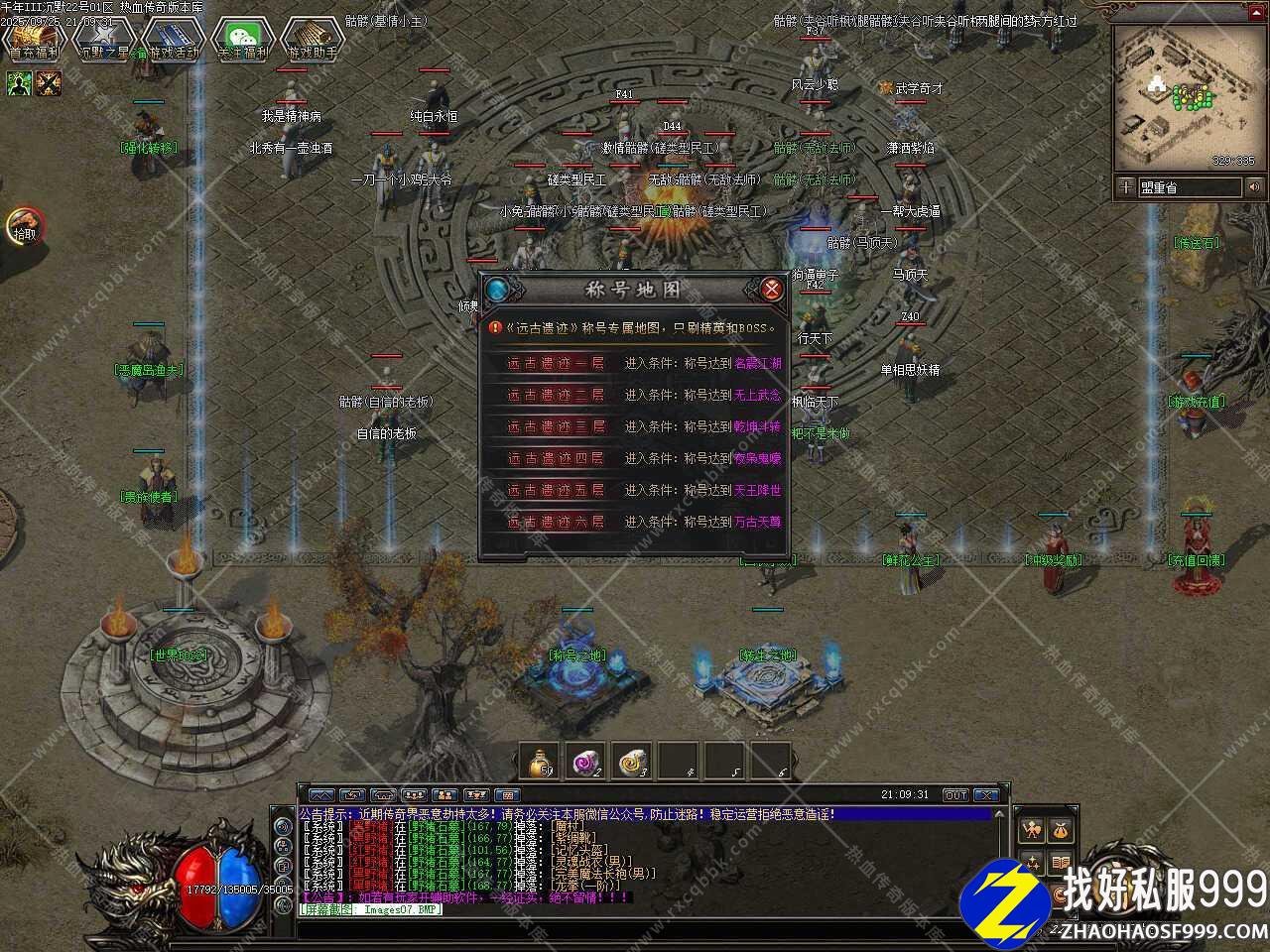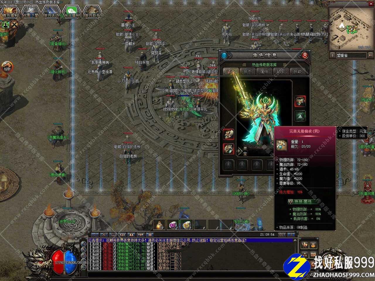 一、此sf999发布网服务端属于暗黑铭文类型,版本使用翎风引擎制作,无需其它插件,补丁大小4.17GB,测试客户端为17周年纯净客户端,游戏兑换码999999,此版本带有假人功能,清档之后自动上线。