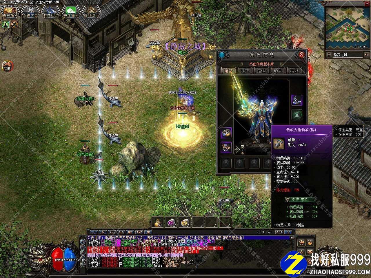 三、装备随机获得套装属性,21种套装搭配更具特色,新增百种技能铭文,技能不再单调,三职业特色突出。