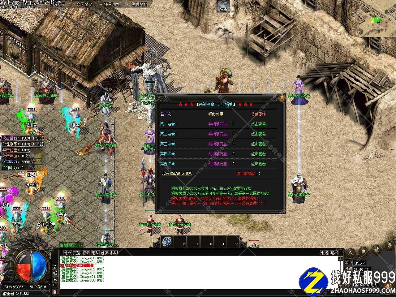 三、添加闭关泡点功能,免费安全泡点普通玩家每秒获得500W经验,只能在土城安全区泡点,最高可泡到600级,之后请选择随身泡点,元宝随身泡点快速升级,走到哪泡到哪儿,每秒收取50元宝,每秒获得8888万经验,最高可泡到650级。